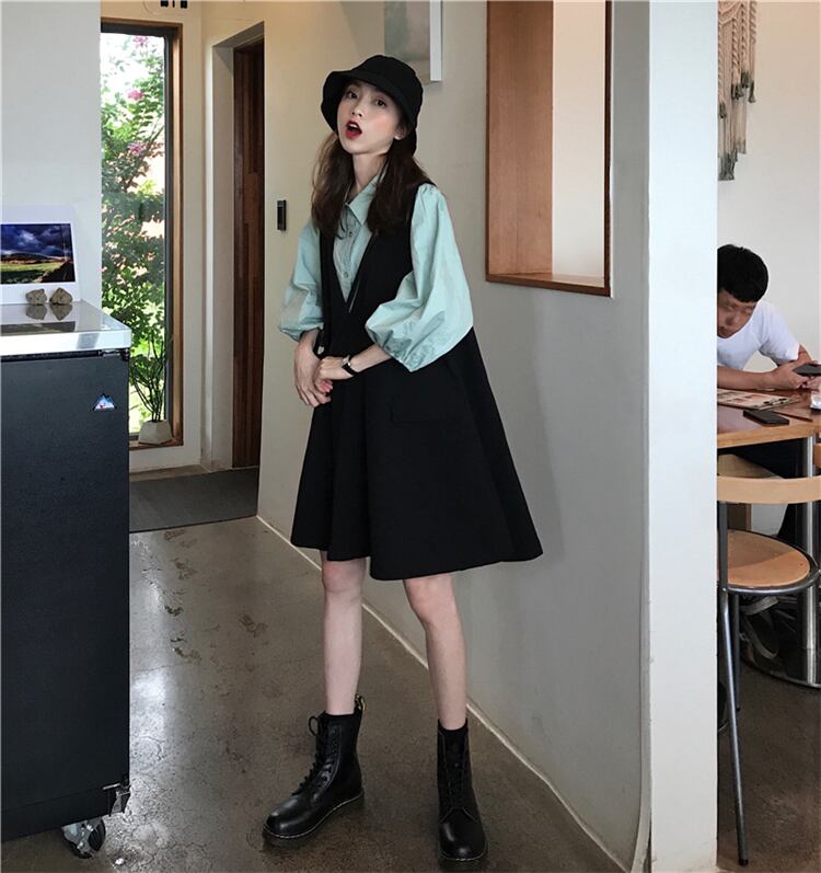 色:グレーのドレス,緑のシャツ,格子縞のシャツ