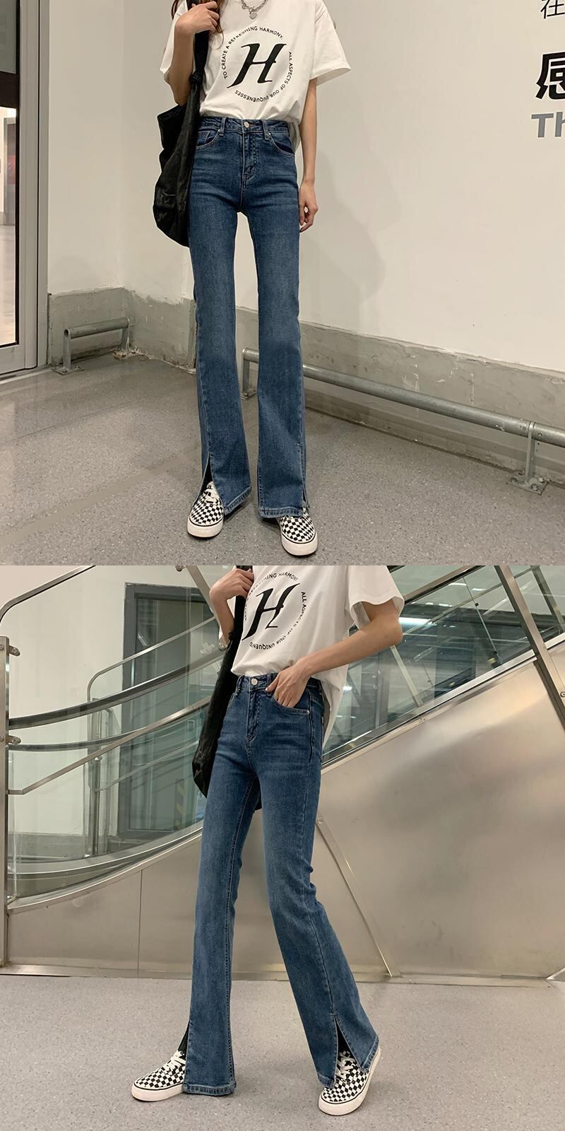 ウェストジーンズ スリットパンツ スプリング レッド 春物 モンロー33680946376