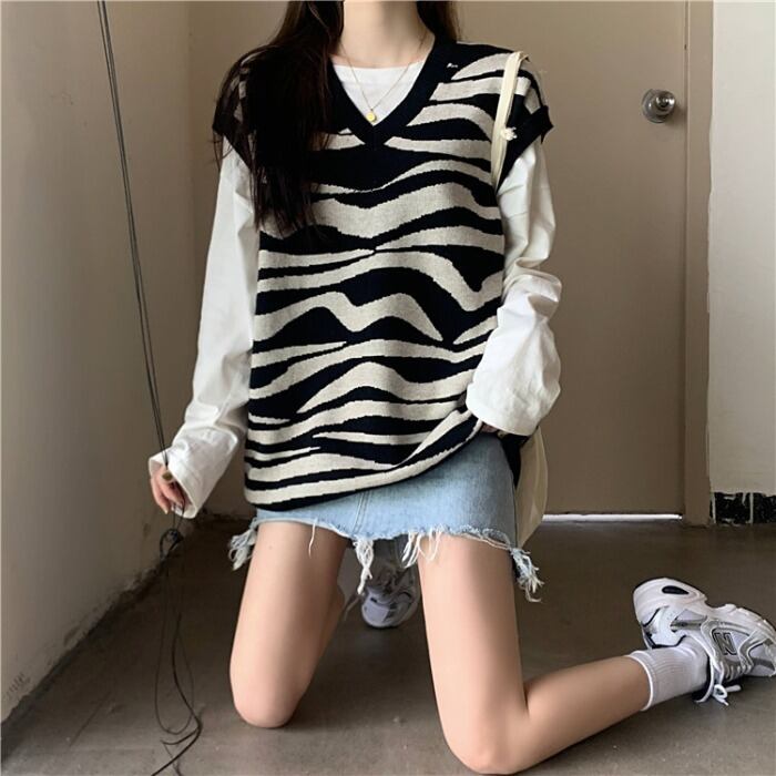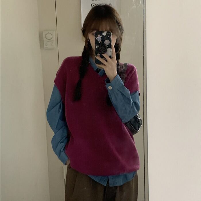 パターンVネックニットレディーススプリングルーズセーター ショートジャケット 春物 モンロー53126242151