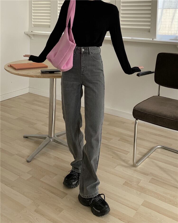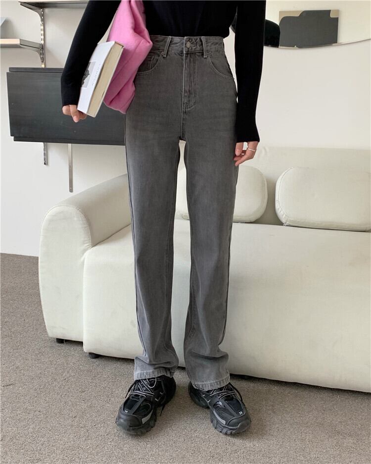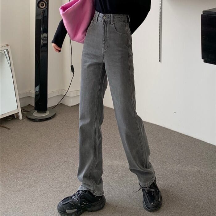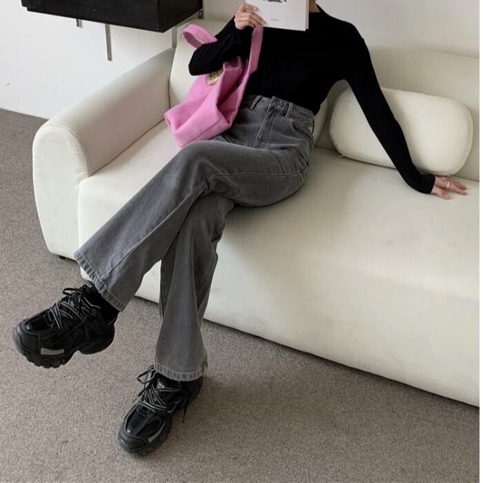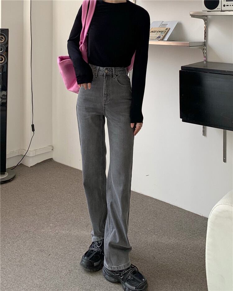 グレーハイウェストジーンズ スプリングルーズ薄手パンツ レッド 春物 スモーキー モンロー12285453933