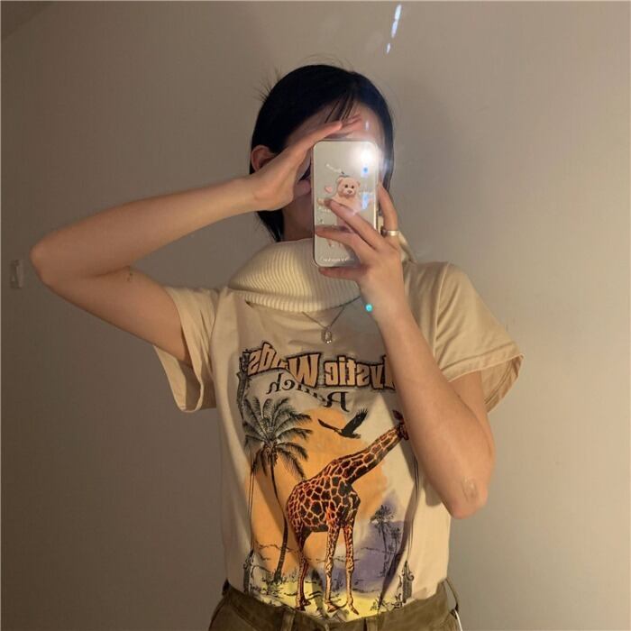 スタンダードシャツ 薄手Tシャツ スプリングブラウス レトロ 春物 モンロー5844936911