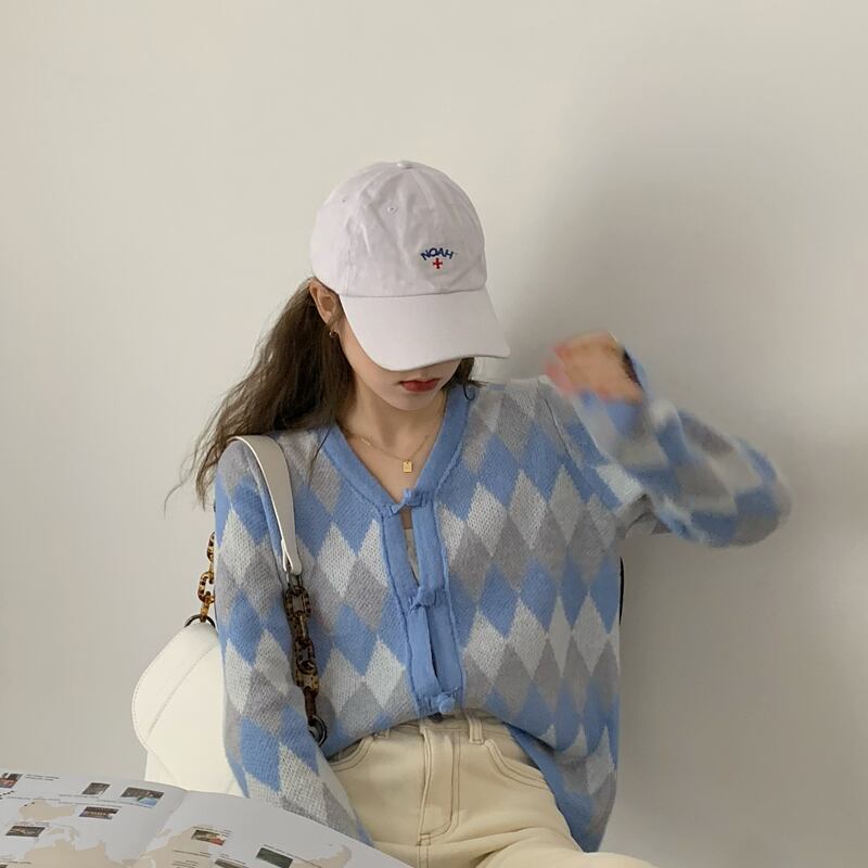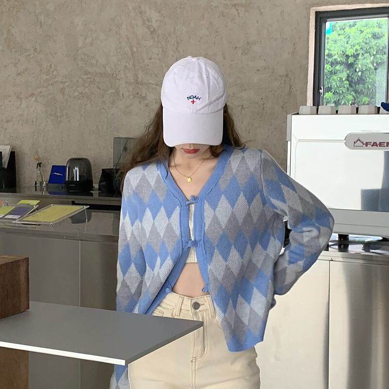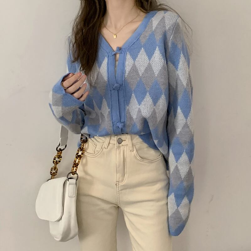 スタイルスタンダード格子柄セーター ジャケット レディースVネックニットカーディガンスプリングショートトップス ロング レトロ 春物 モンロー98387299675