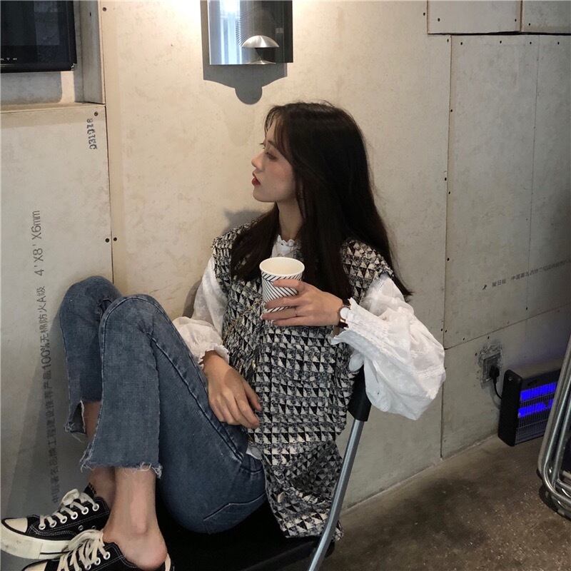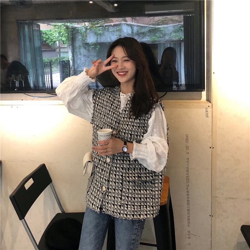 スタンダード格子柄ジャケット レディーススプリングルーズノースリーブVネックトップス レトロ 春物 モンロー67521010850
