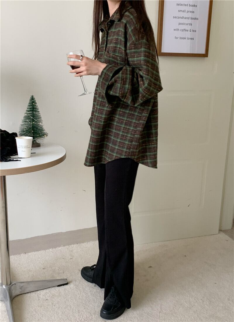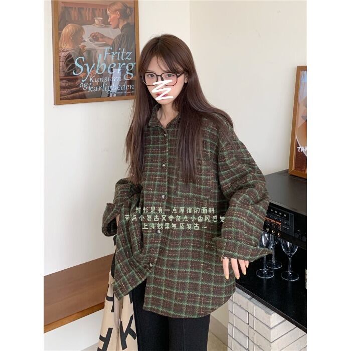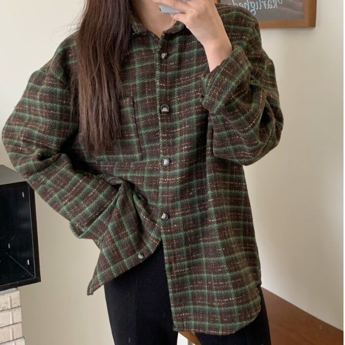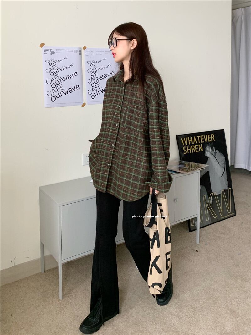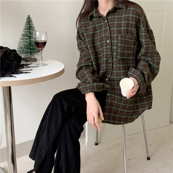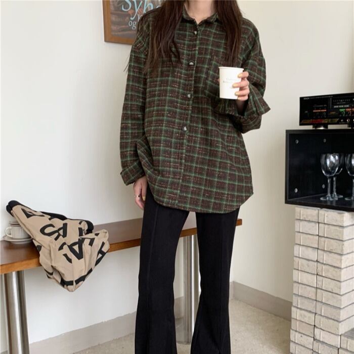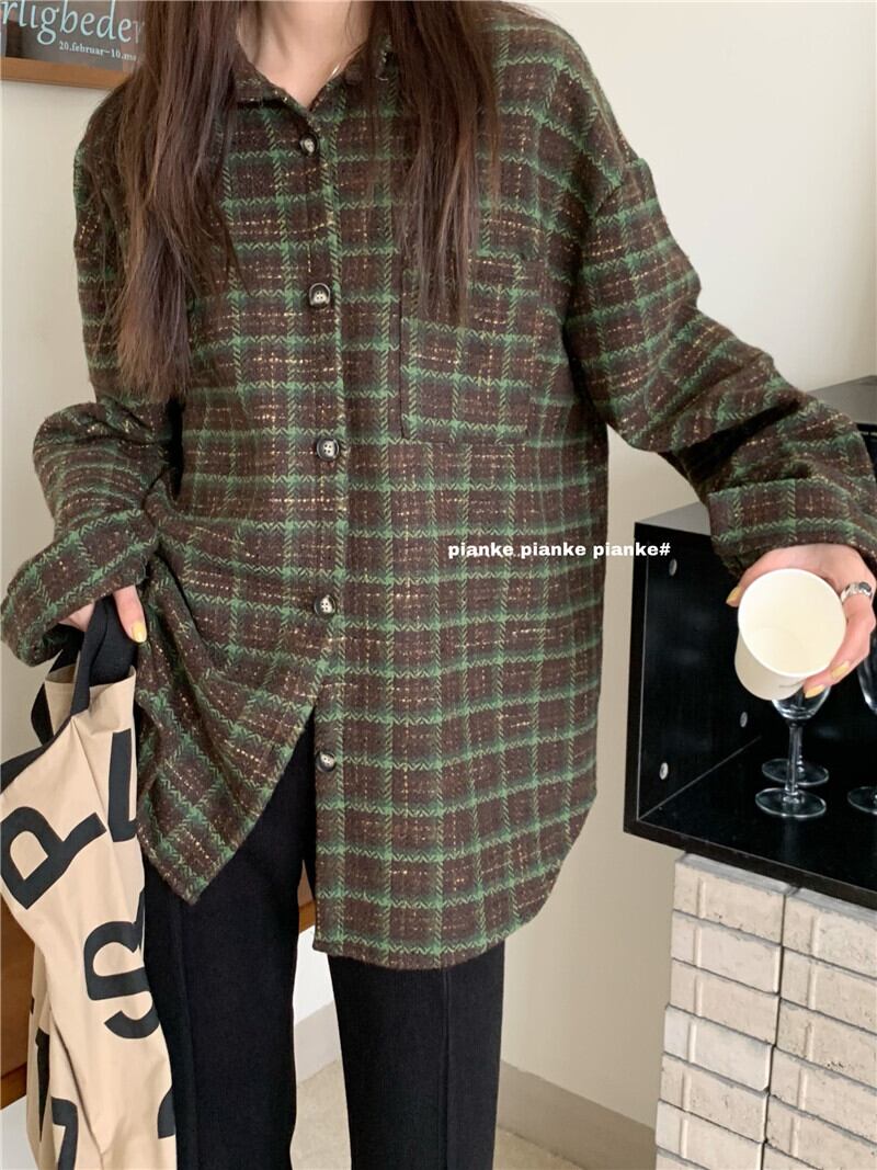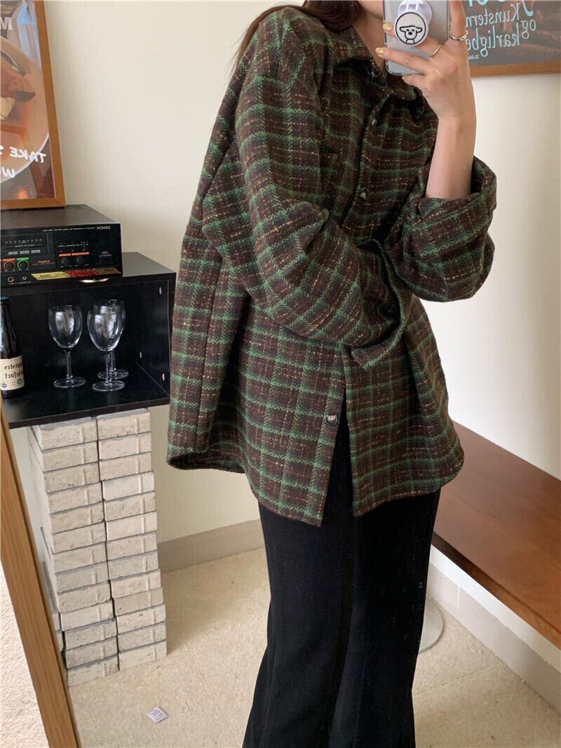 スタンダードルーズ格子柄シャツ スプリングジャケット ロング レトロ 春物 モンロー39359117447