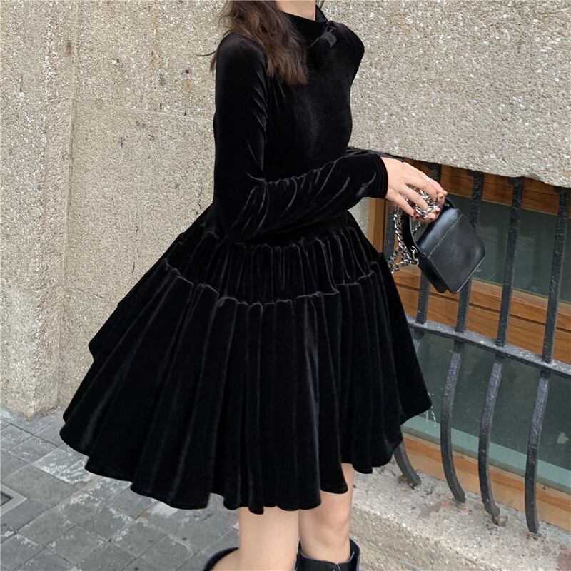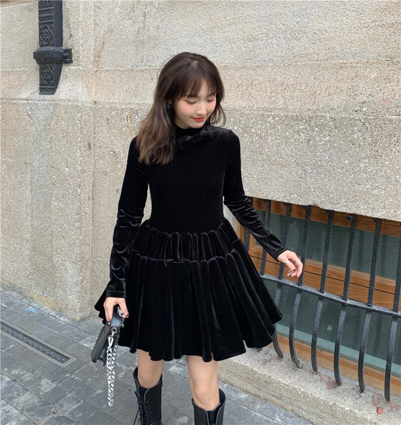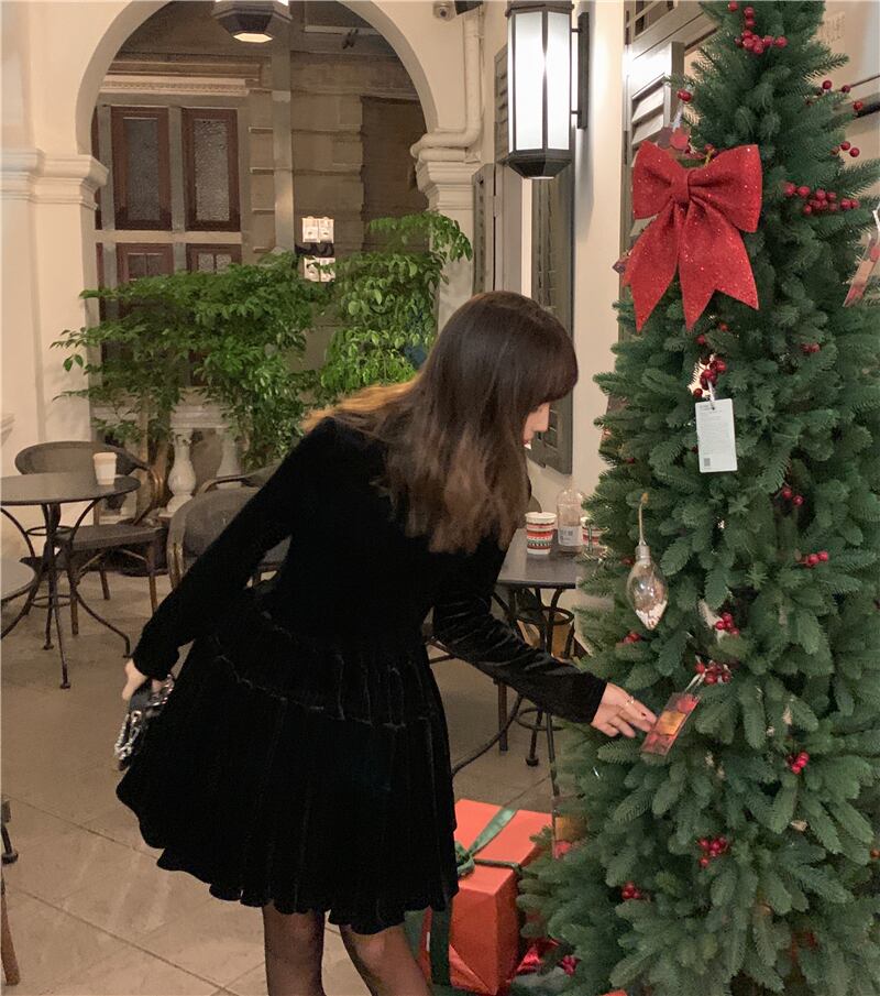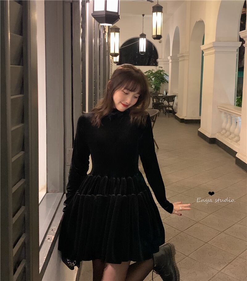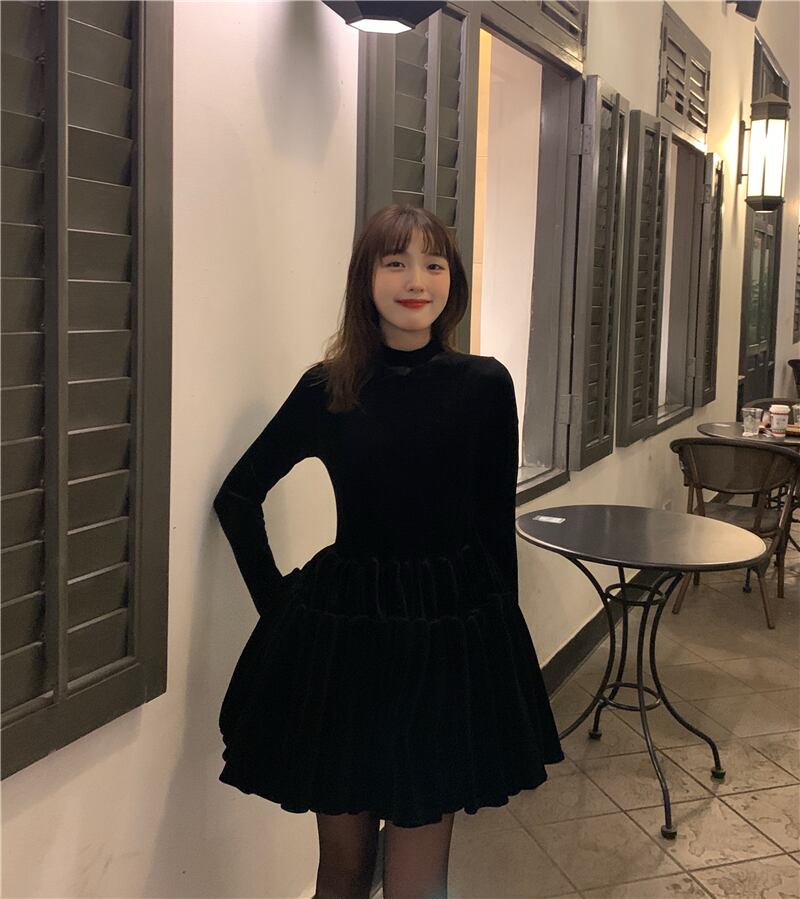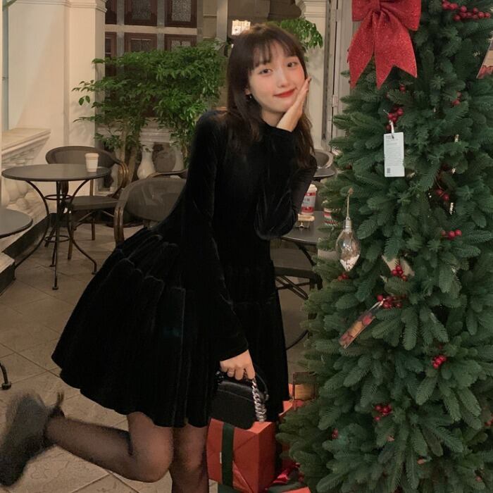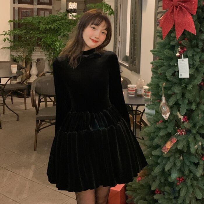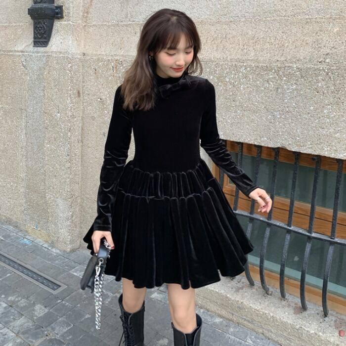スタンダードベルベットドレス スタイルブラックスプリングスカート レトロ 春物 モンロー9572535873