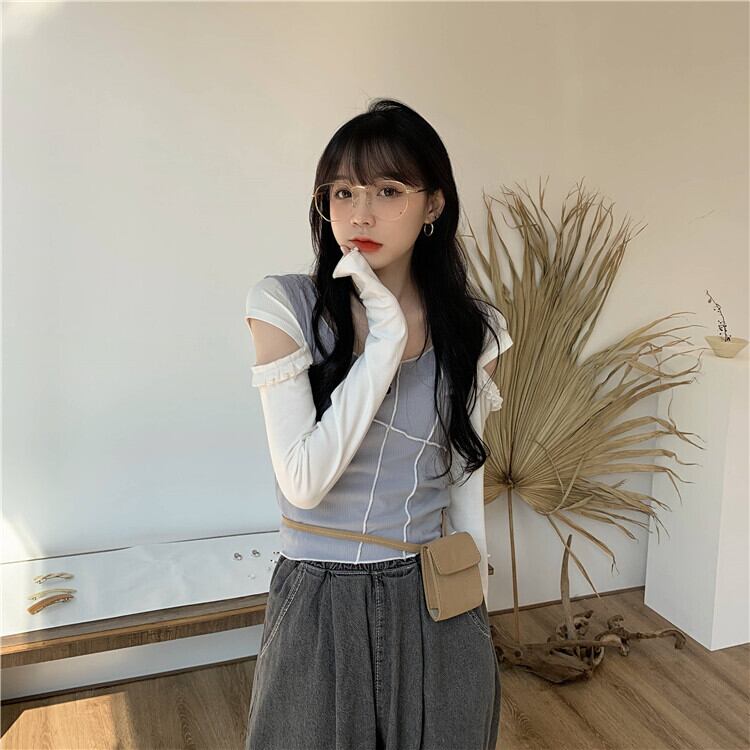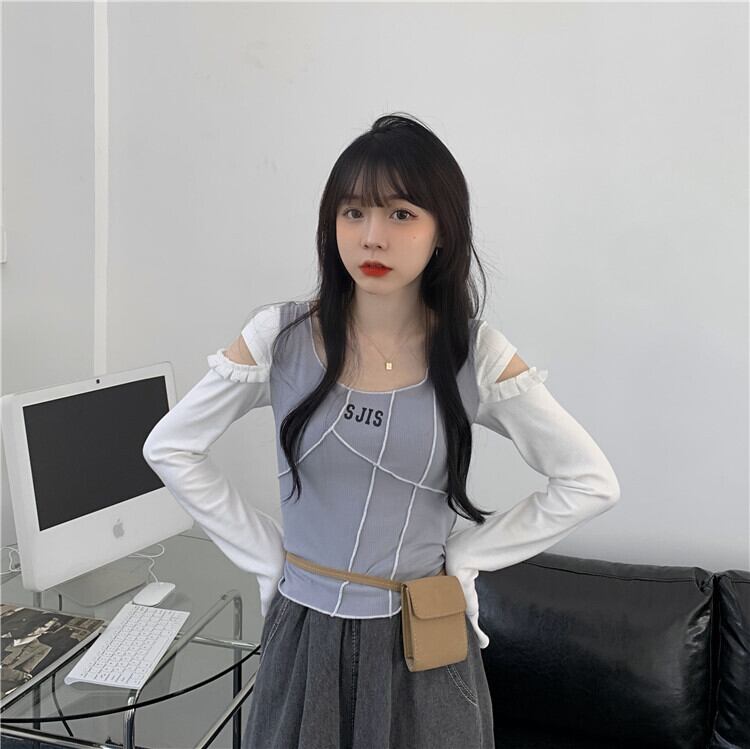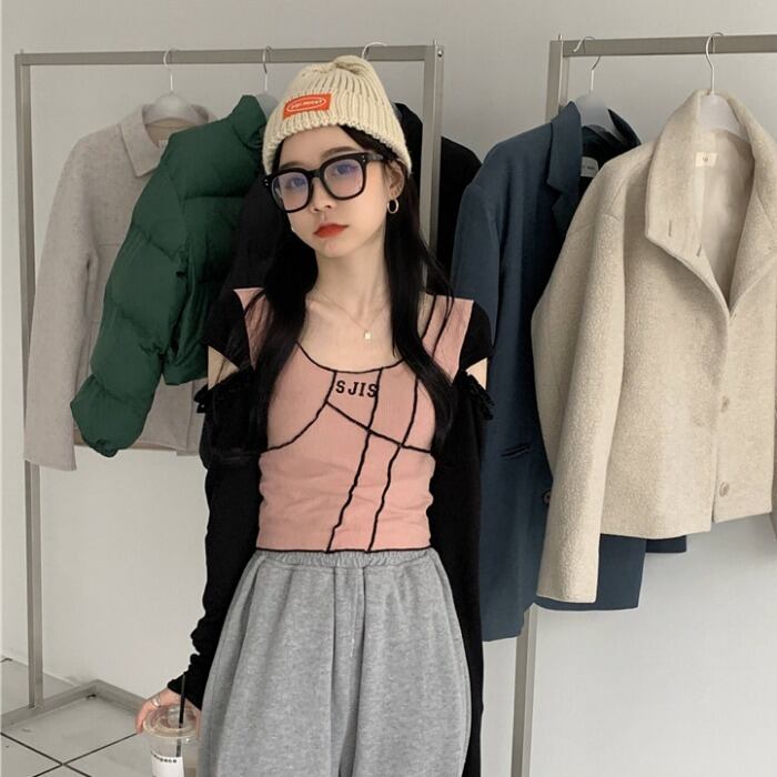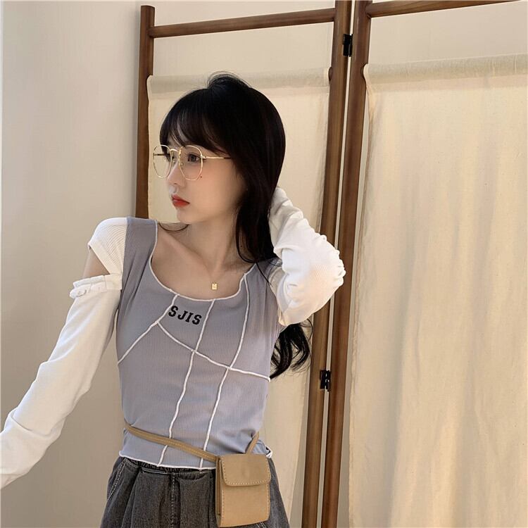 スタイルストラップレスTシャツ シャツ スプリングショートトップス ロング 大人ガーリー スウィート キュート カジュアル 春物 モンロー5645469609