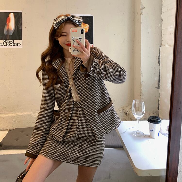 格子柄スタイルジャケット ショートトップス ストリート モンロー64186234771