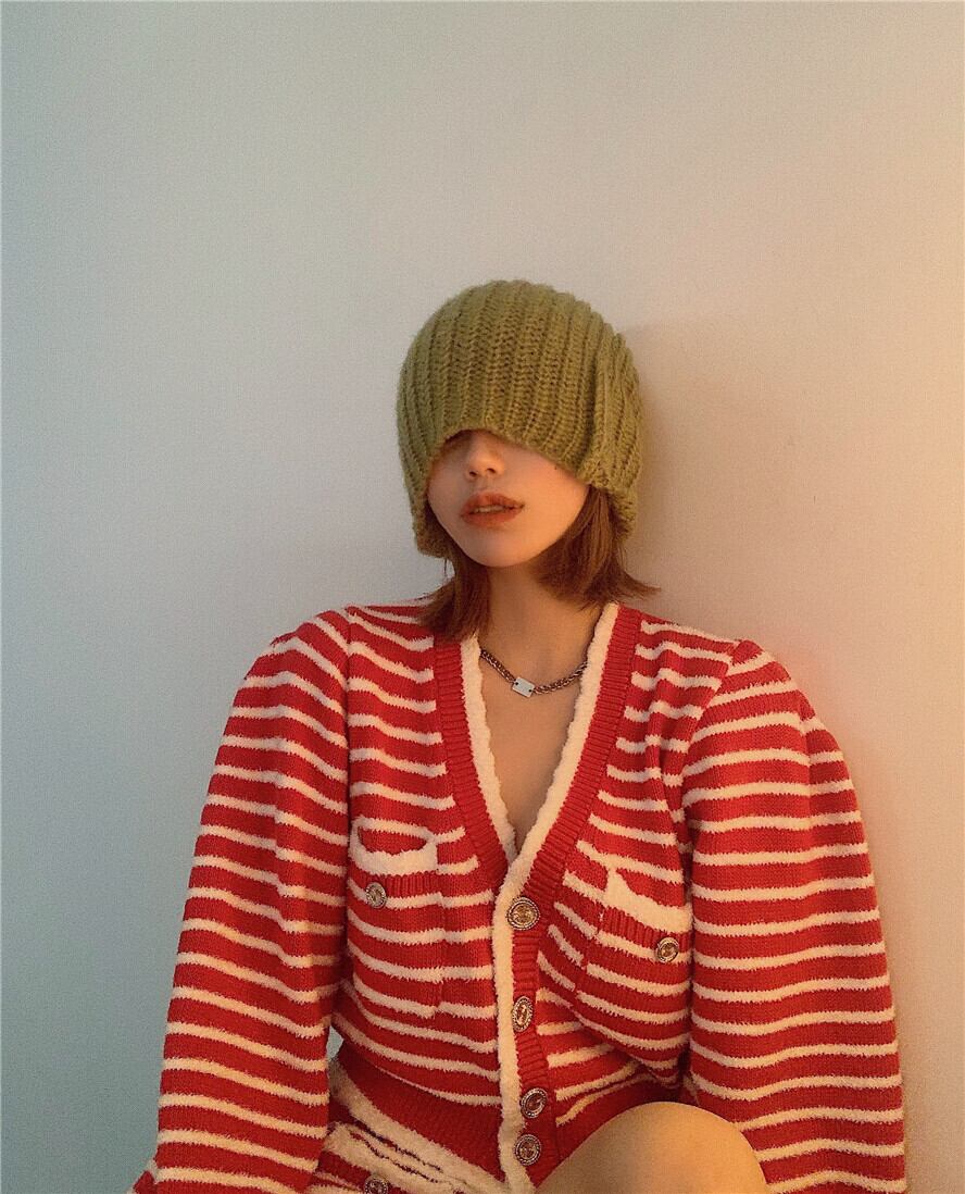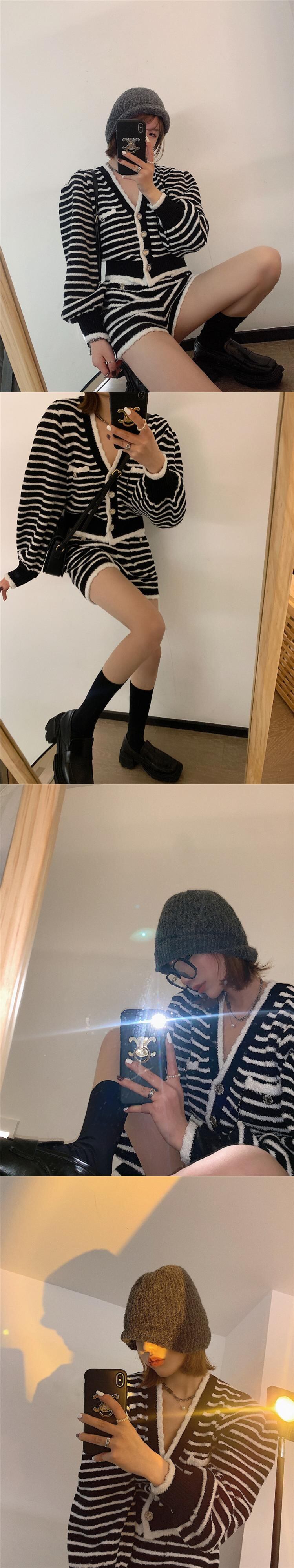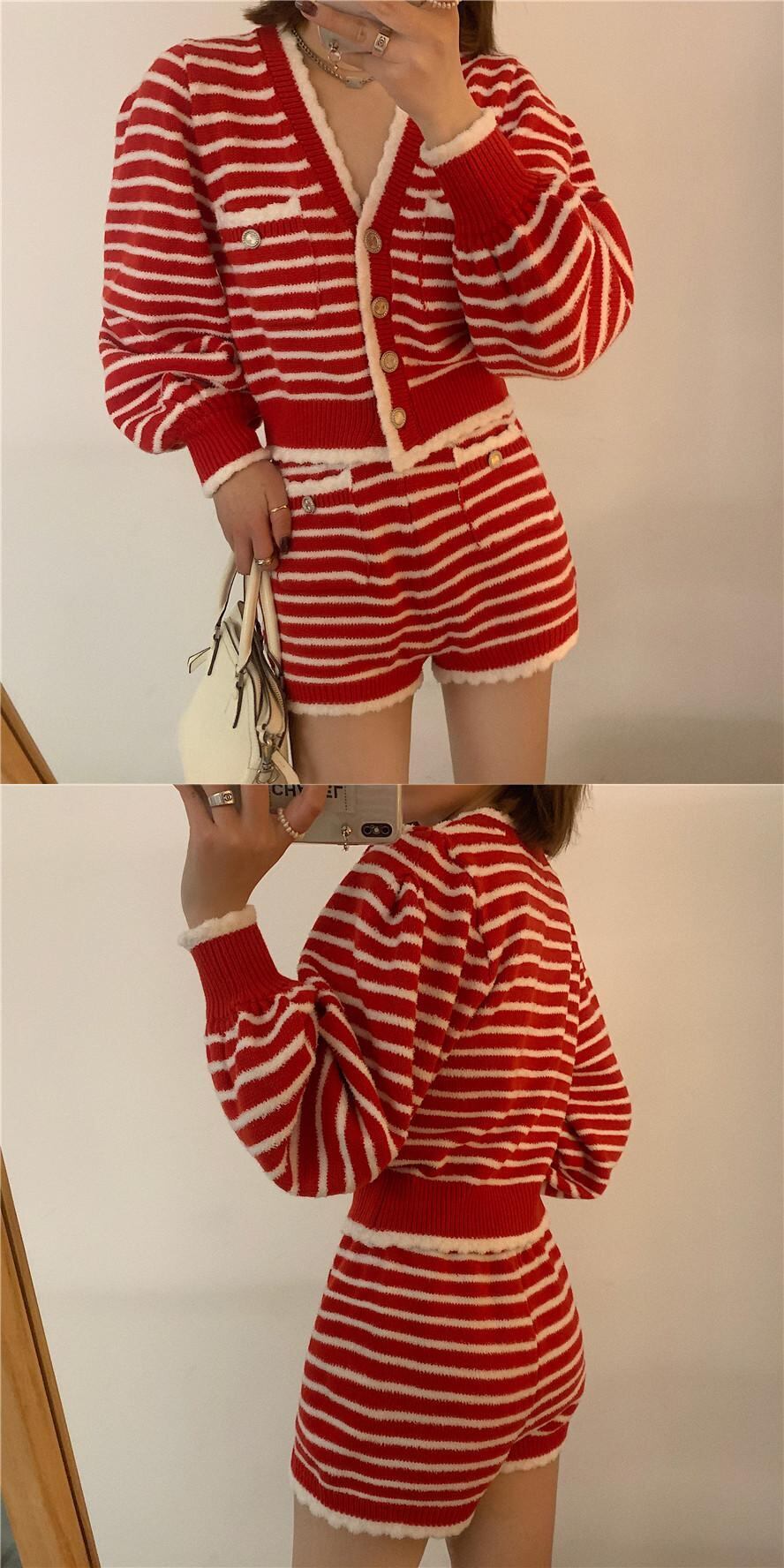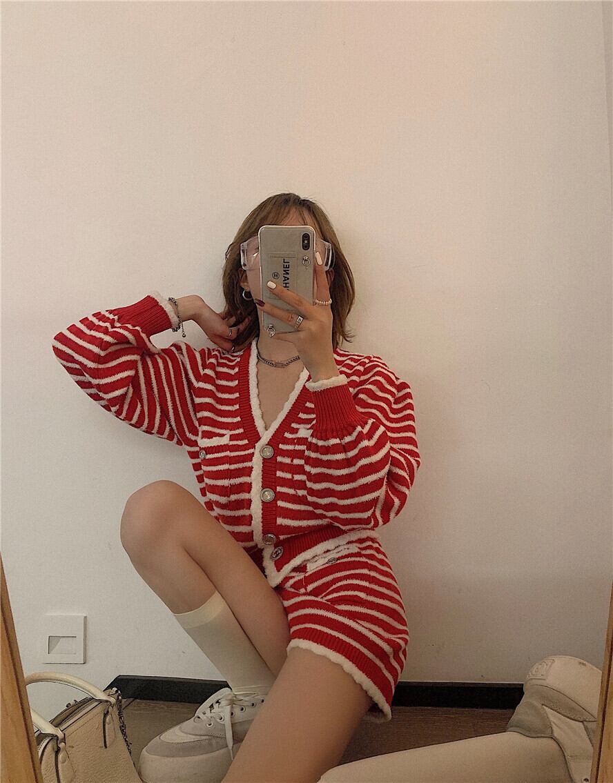 スタンダードストライプセーター ジャケット レディーススプリングルーズVネックニットカーディガントップス レトロ 春物 モンロー2306177683