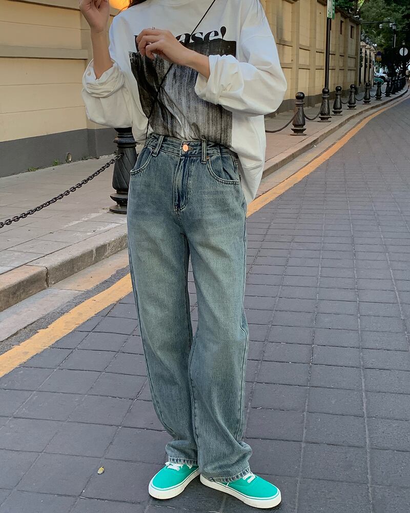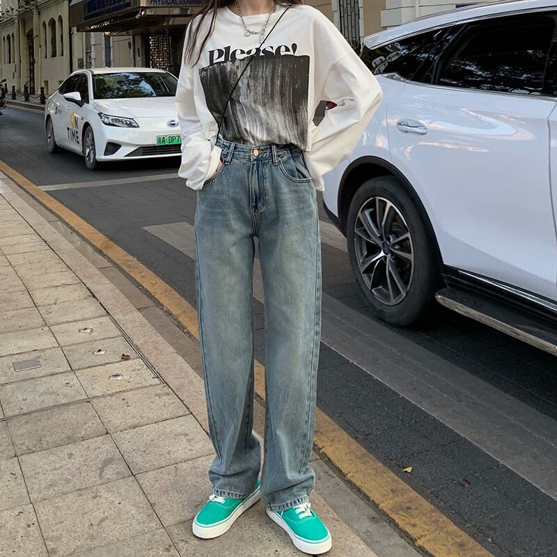 パンツ レディースルーズハイウェストウェストスリムジーンズ スプリングワイドレッグ 春物 ワイドパンツ モンロー81752099090