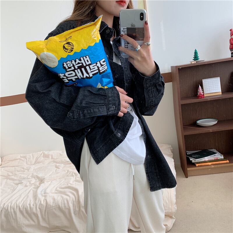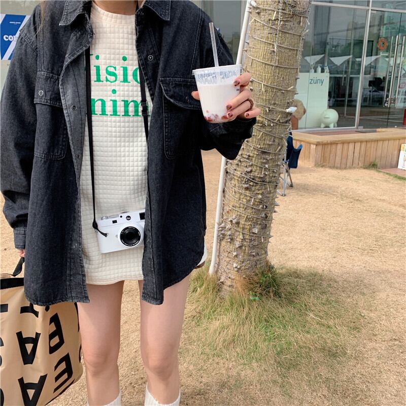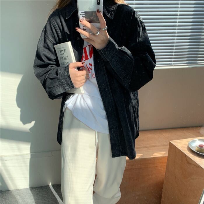 ブラックグレーシャツ ジャケット スプリングスタンダードトップス ロング レトロ 春物 モンロー69588086061