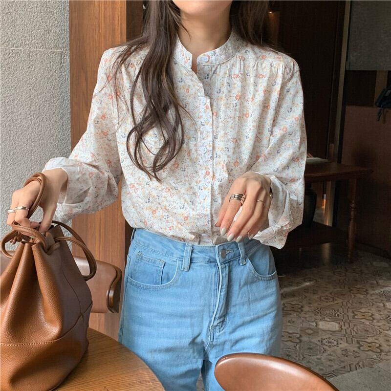 スタイルフローラルカラーシャツ レディーススタンダードジャケット トップス ロング レトロ 花柄 モンロー83094496061