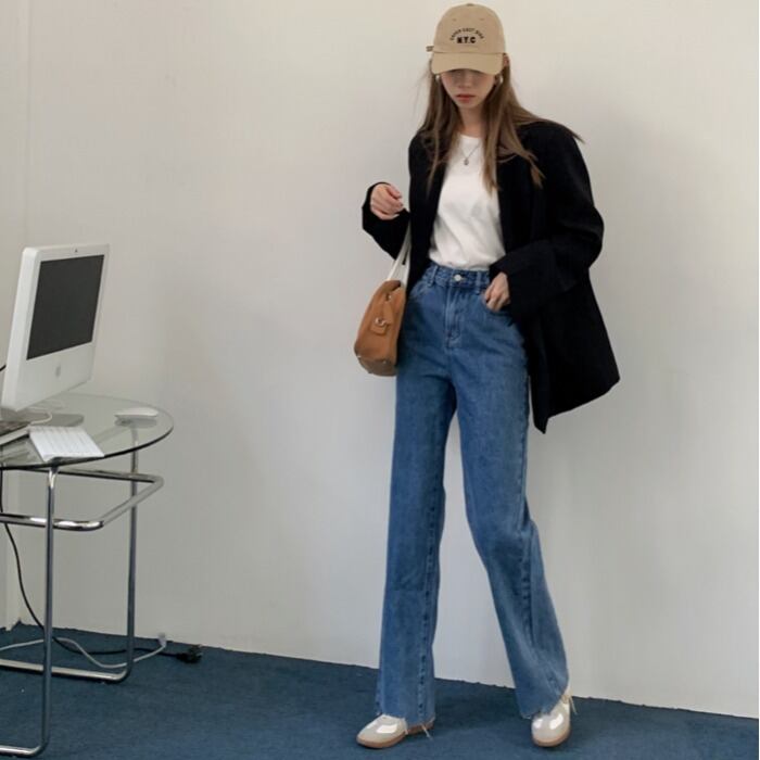ジーンズ ルーズパンツ ワイドレッグウェスト薄手 ワイドパンツ モンロー60098134387