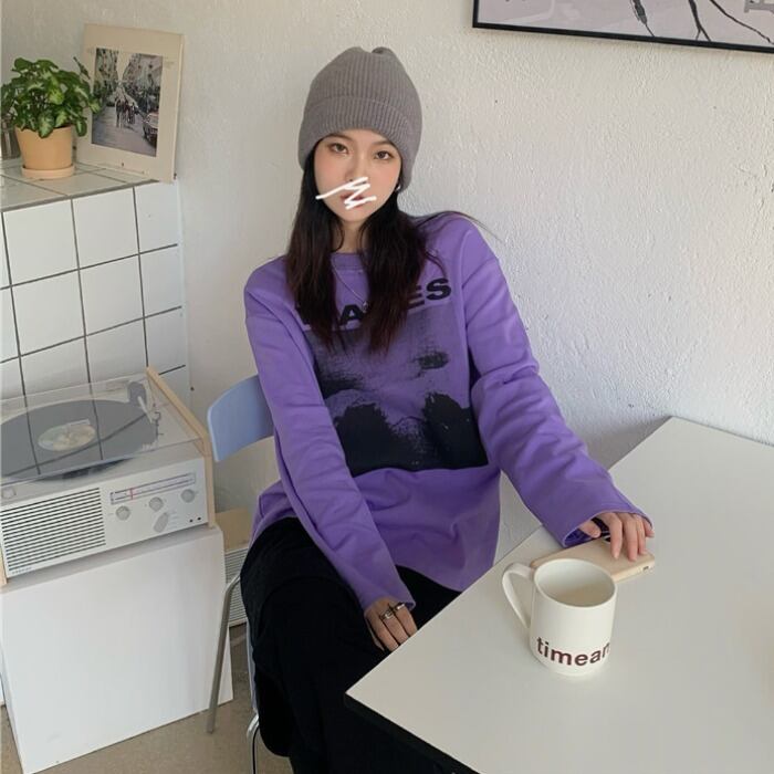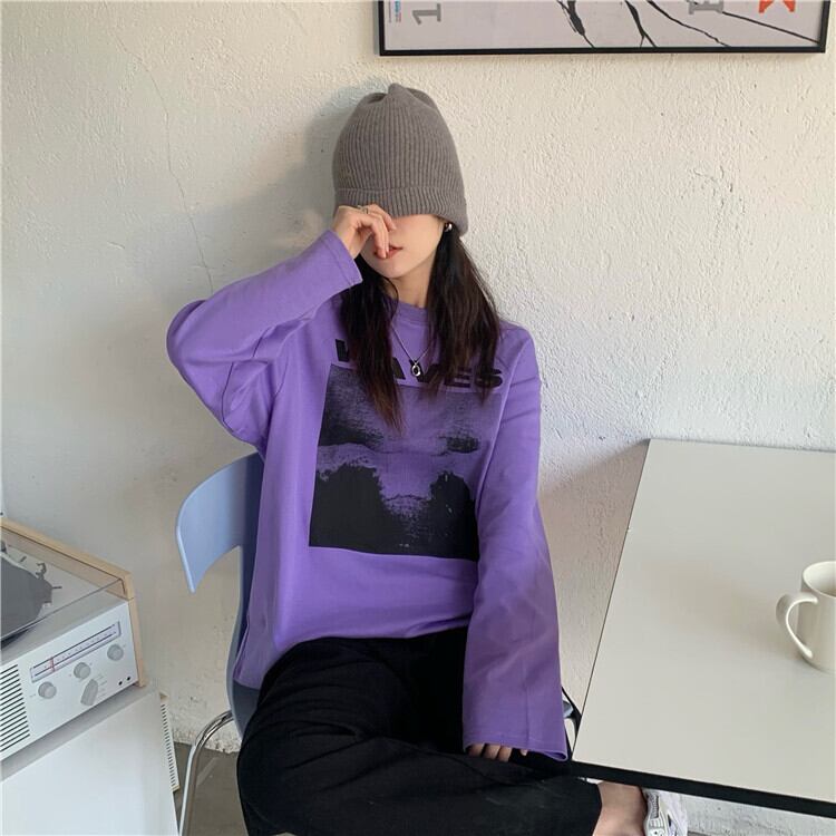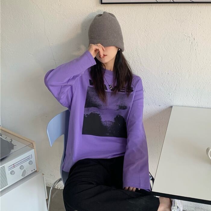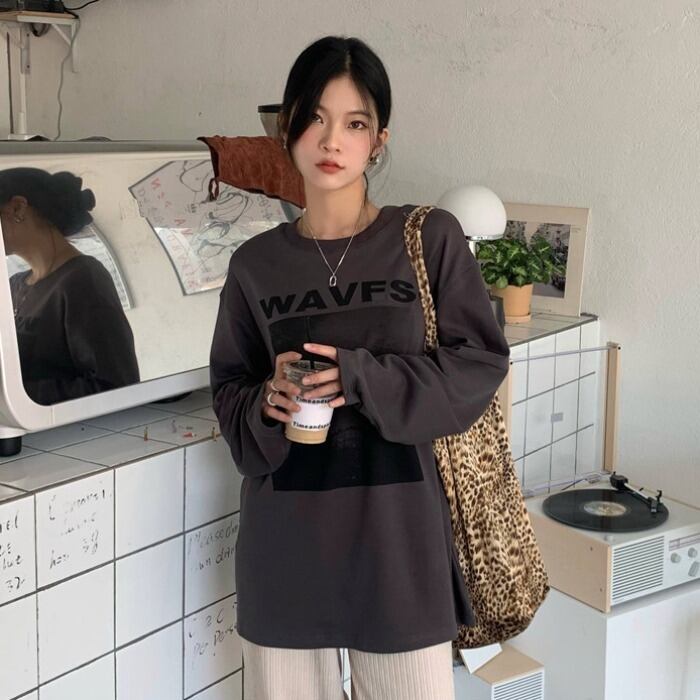 ルーズTシャツ レディーススプリング ロング 春物 モンロー58592042593