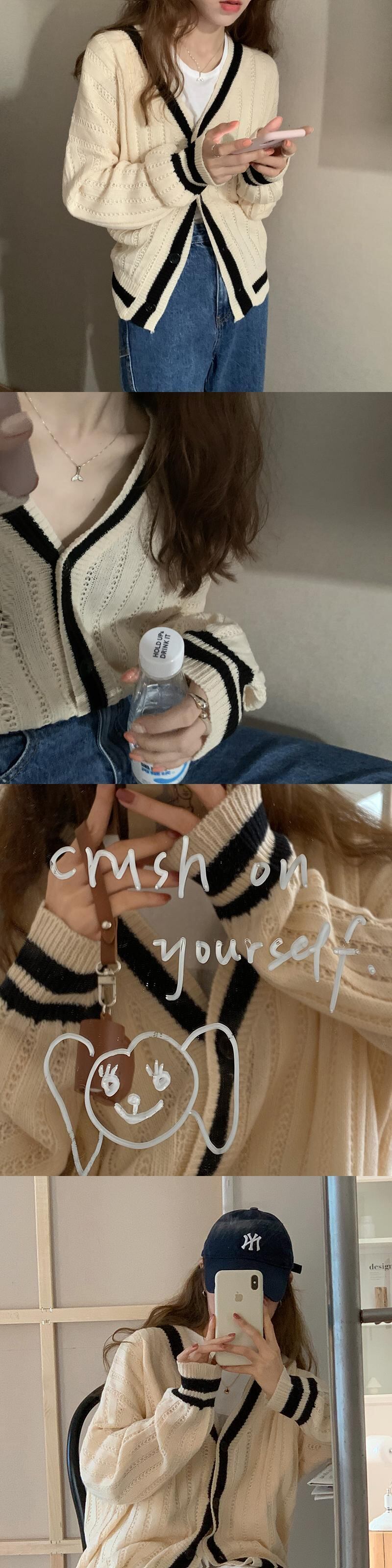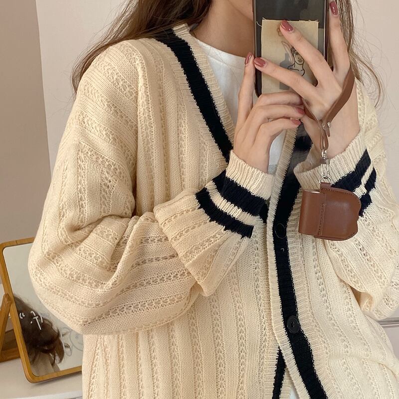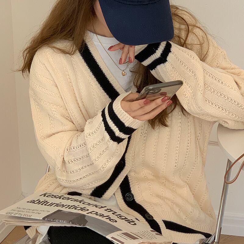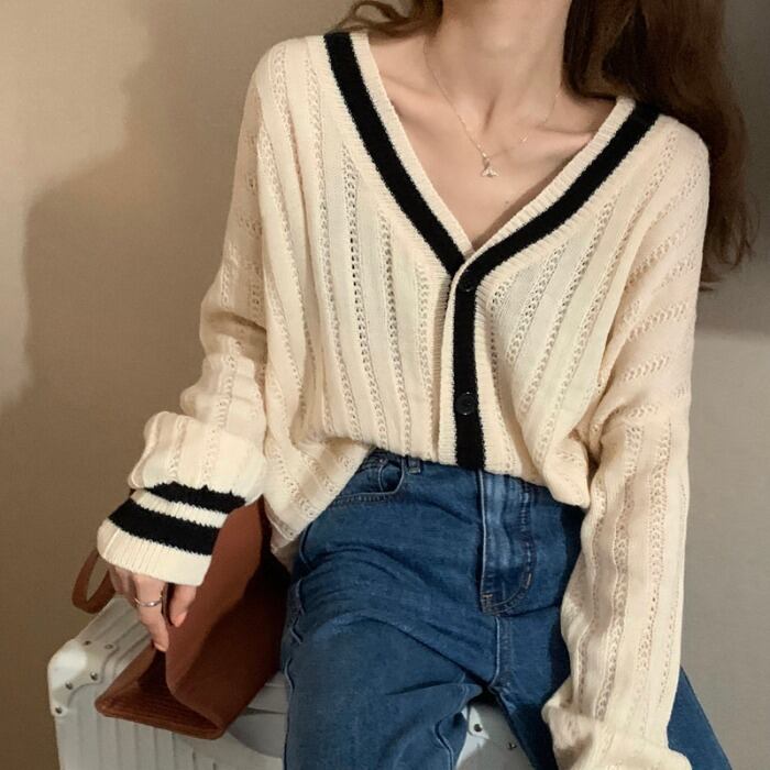 スタンダードVネックセーター カーディガンスプリングルーズニットクロップドトップス コート レトロ 春物 モンロー24416359252