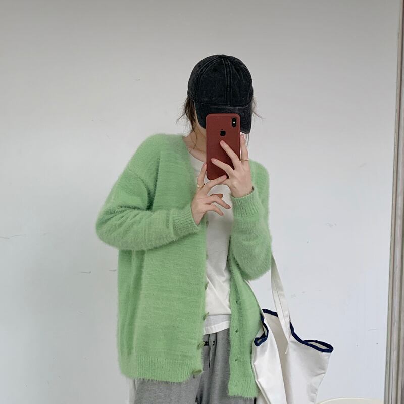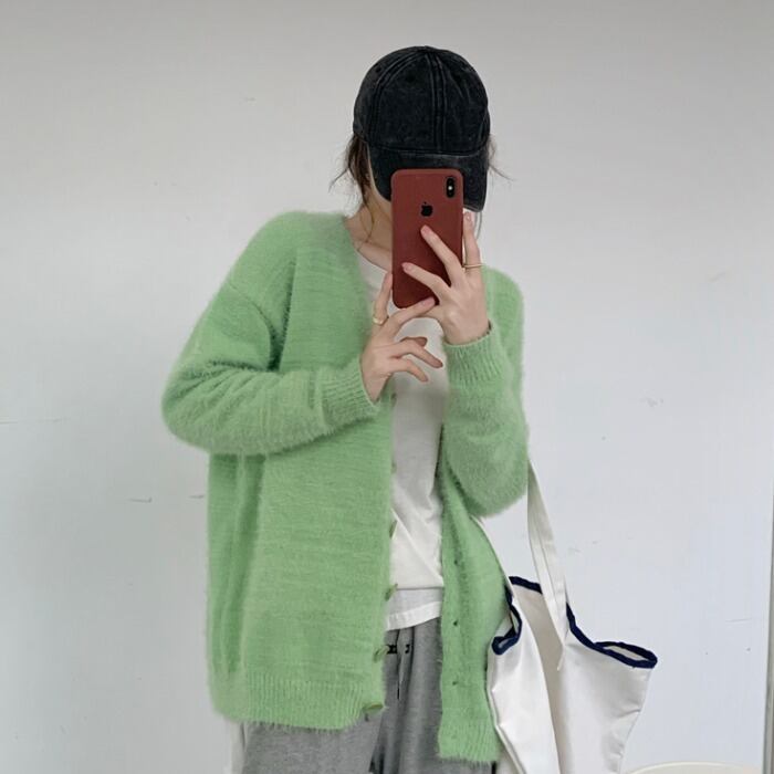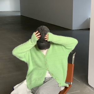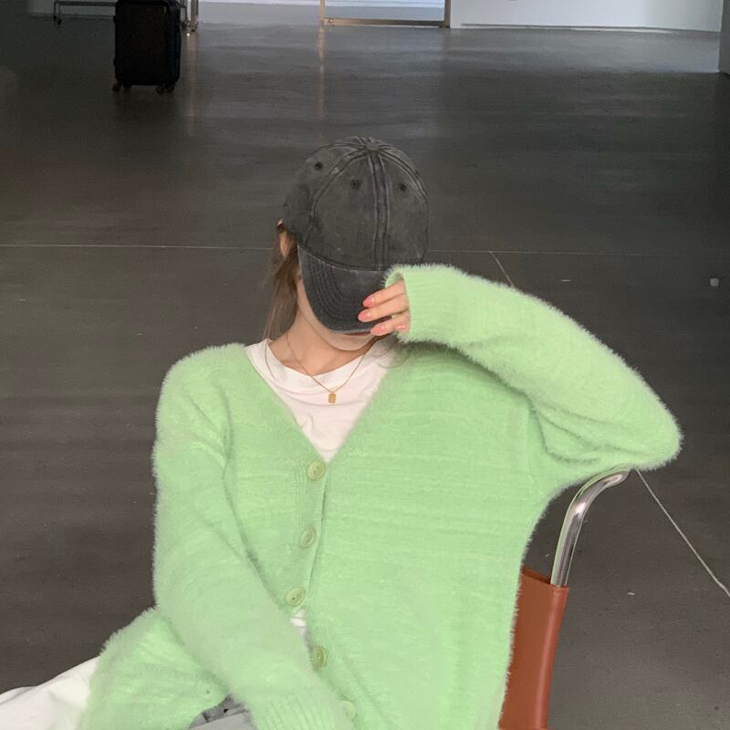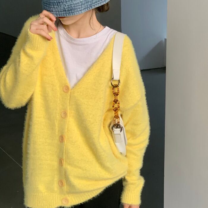 スタンダードスタイルセーター ジャケット レディーススプリングVネックカーディガンルーズニットトップス レトロ 春物 モンロー57940062675
