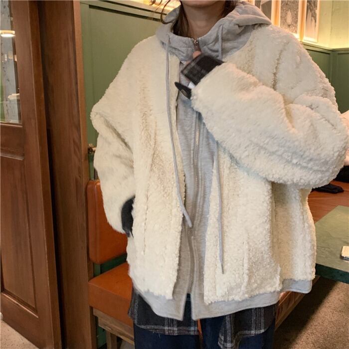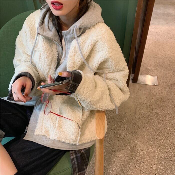 スタンダードファーコート ルーズフードトップス レトロ ストリート モンロー82503747689