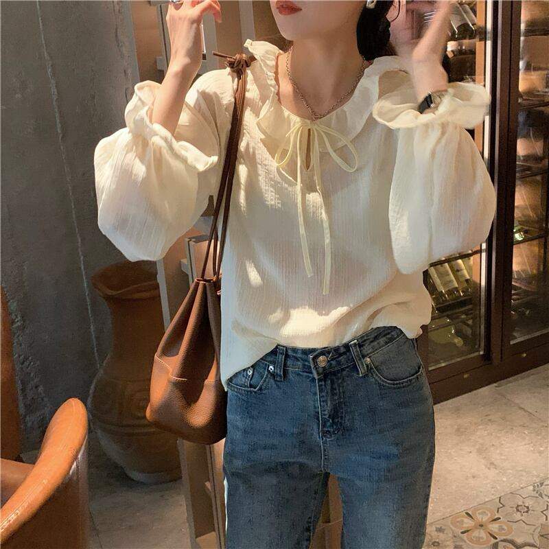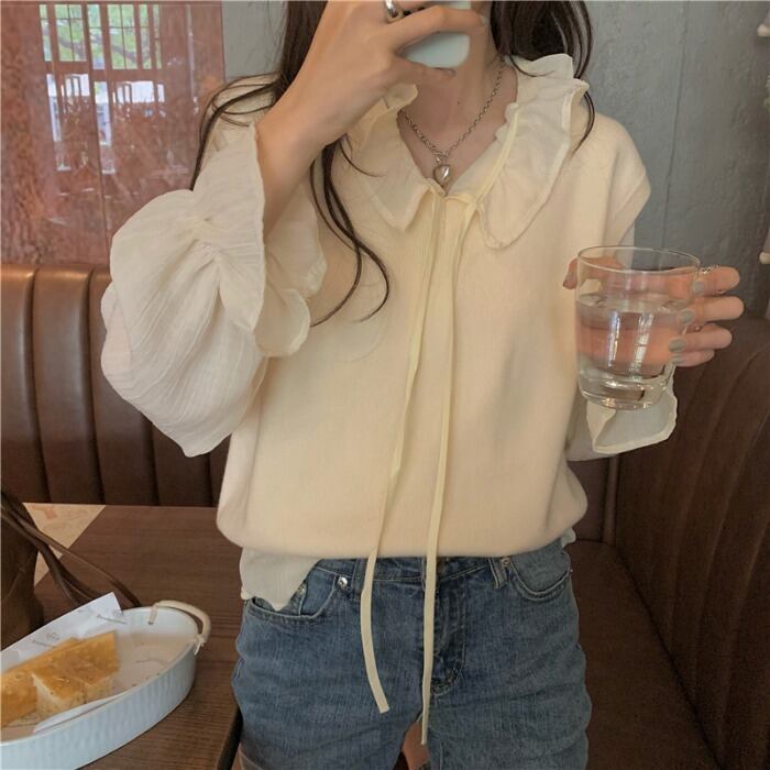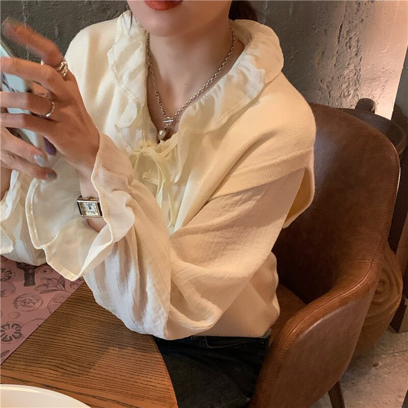 レーススプリングシフォン ロング ブラウス 春物 モンロー47331747708