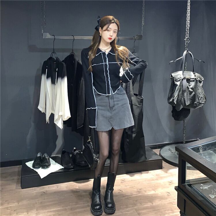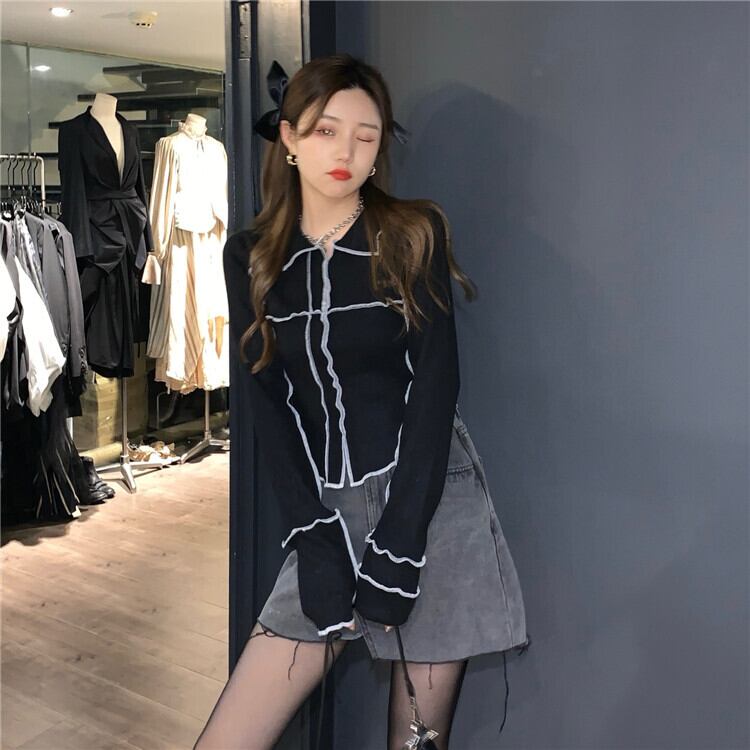 ブラックカラーニットカーディガンスプリングセーター コート スタイルショートトップス 春物 モンロー65320483611