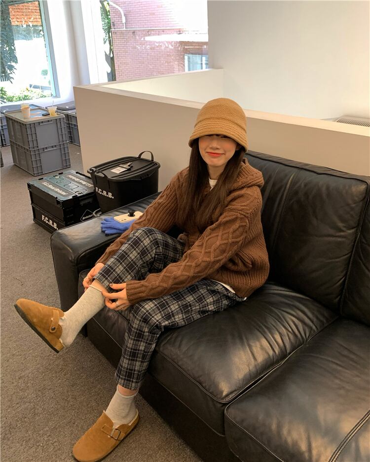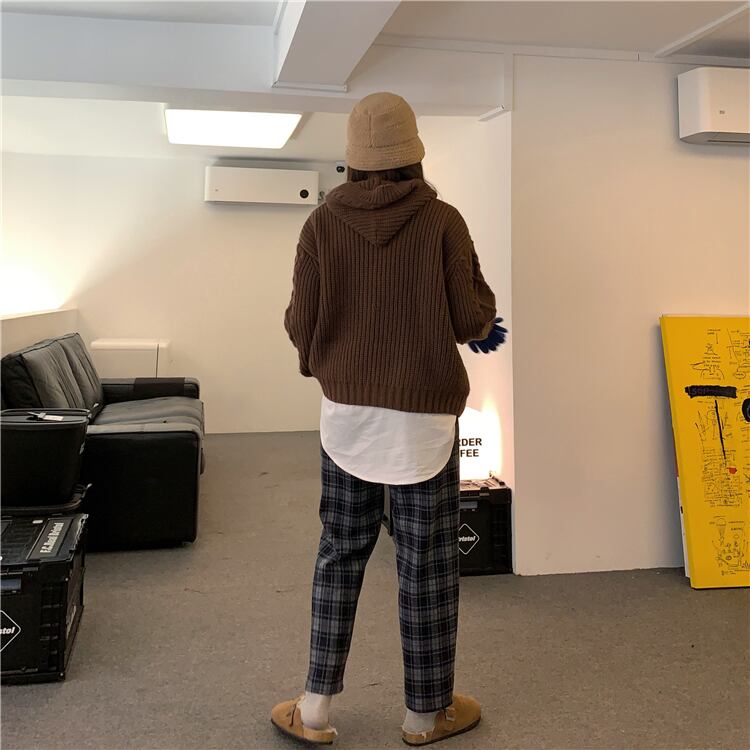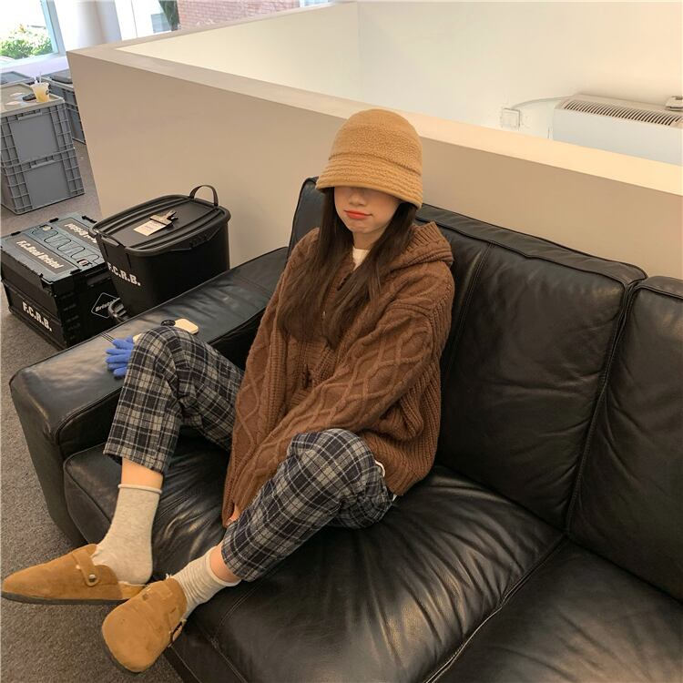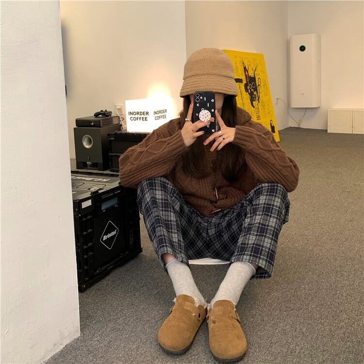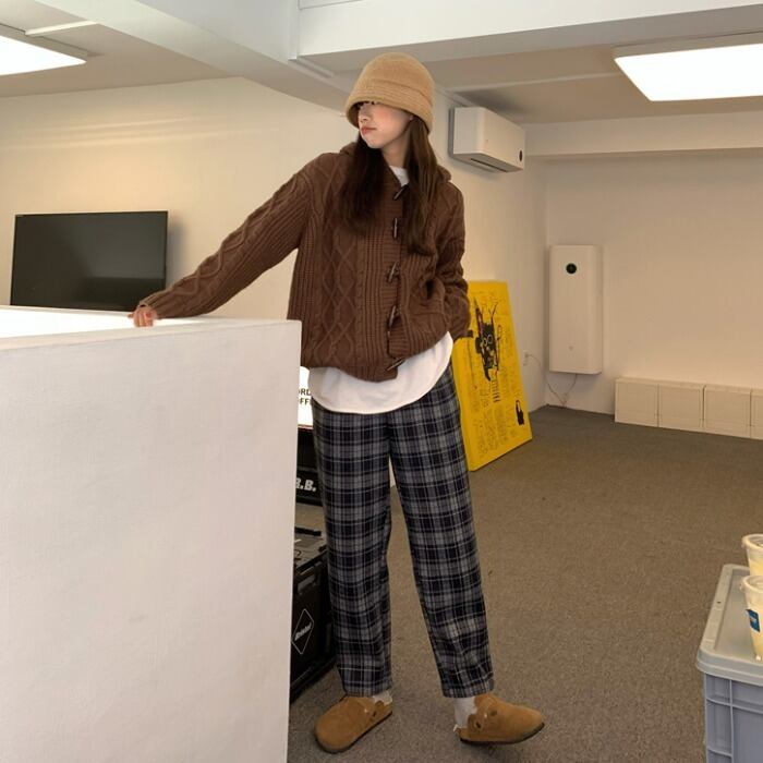 格子柄パンツ ハイウェストカジュアルスプリングルーズ薄手 春物 モンロー11484427870