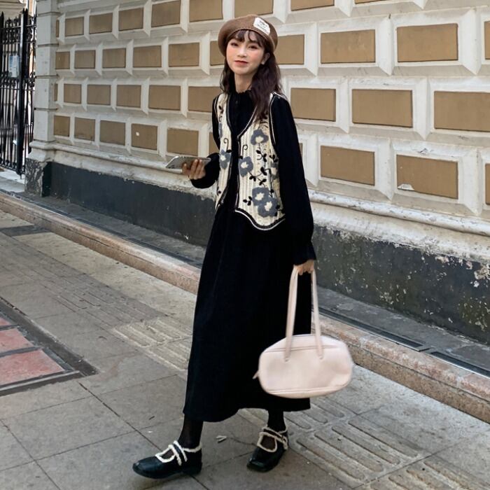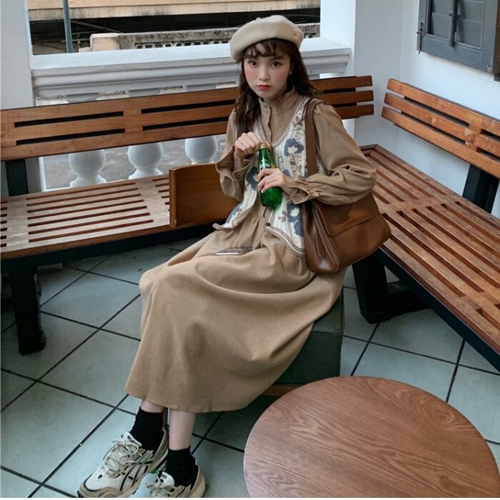 色:赤いベスト,カーキベスト,黒のベスト,赤いスカート,カーキ色のスカート,黒スカート