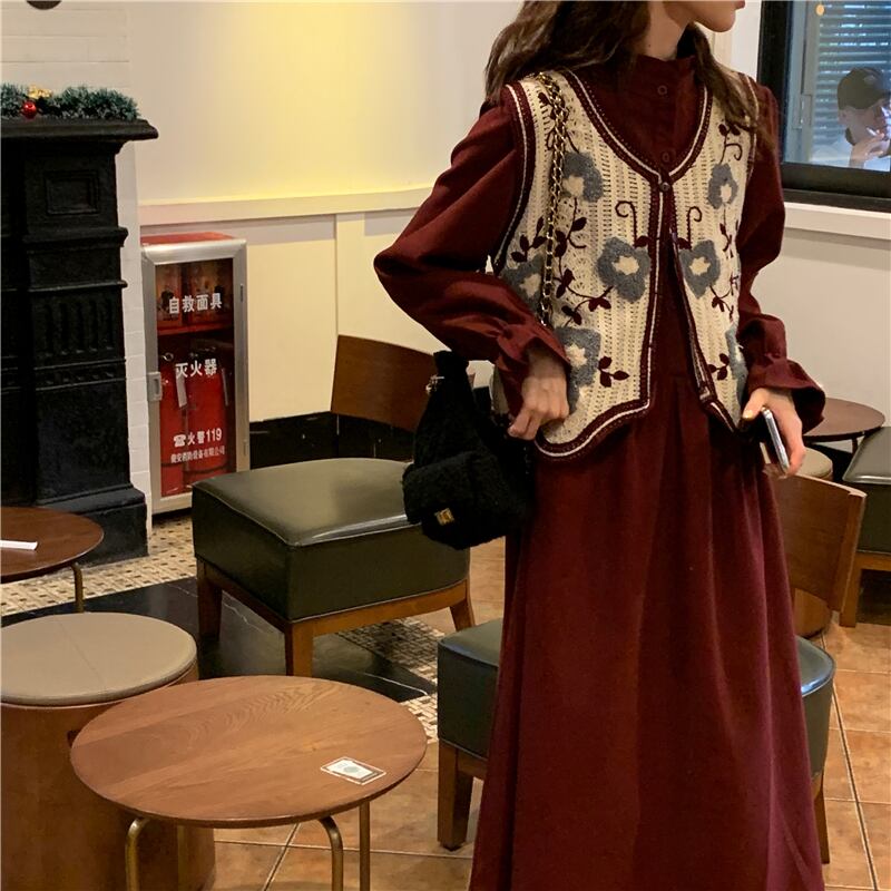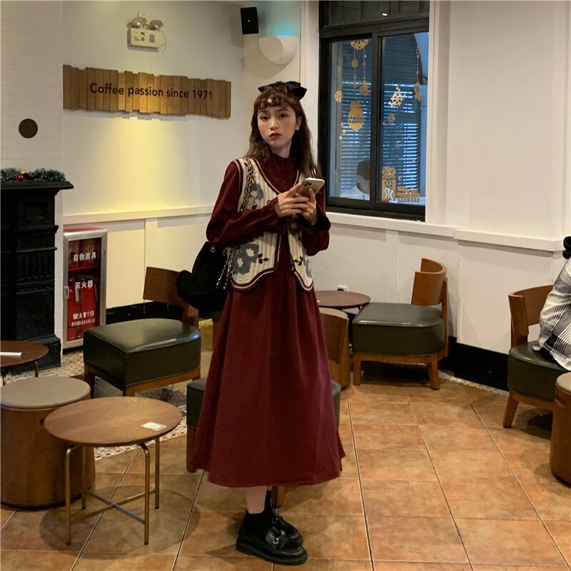 スタンダードレッドドレス レディーススプリングロングスカート レトロ 春物 モンロー48287085052