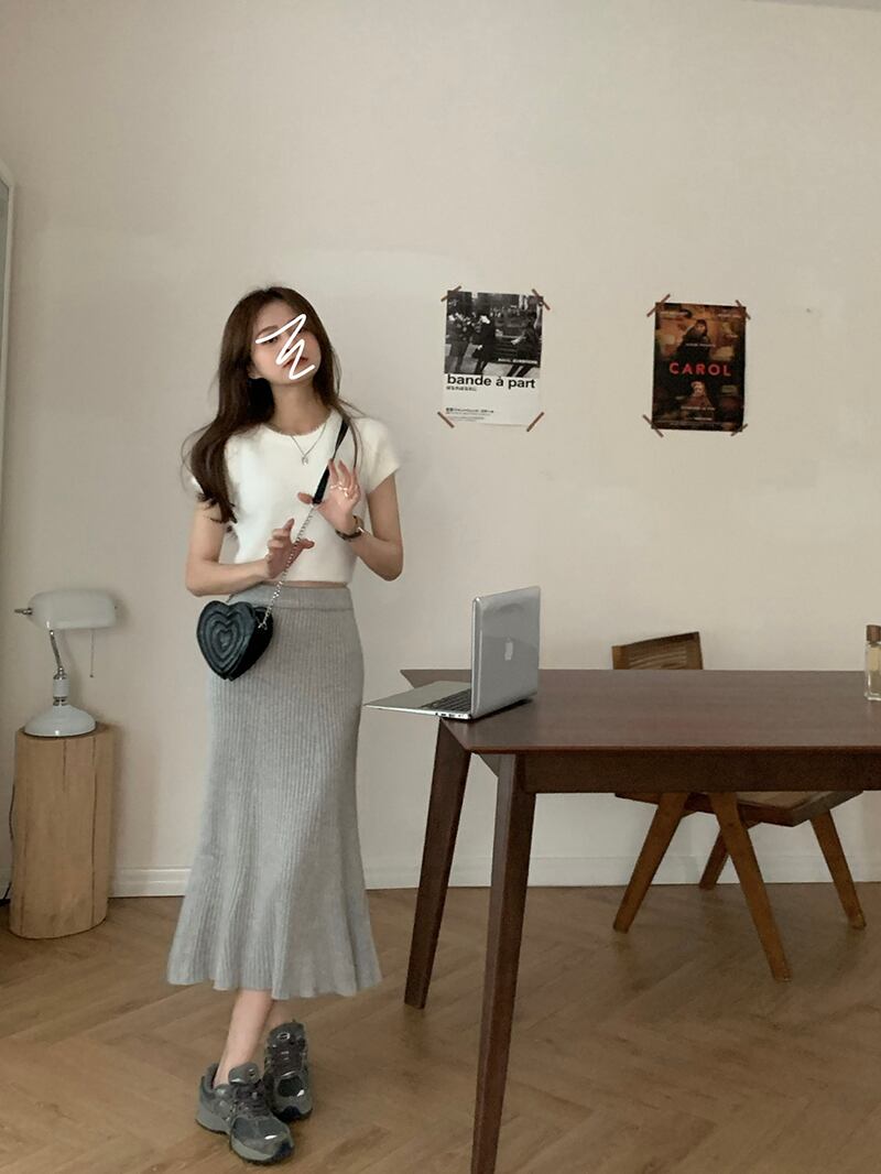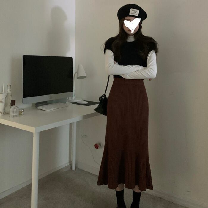 ウェストニットスカート 薄手スプリングロング 春物 モンロー64640725125