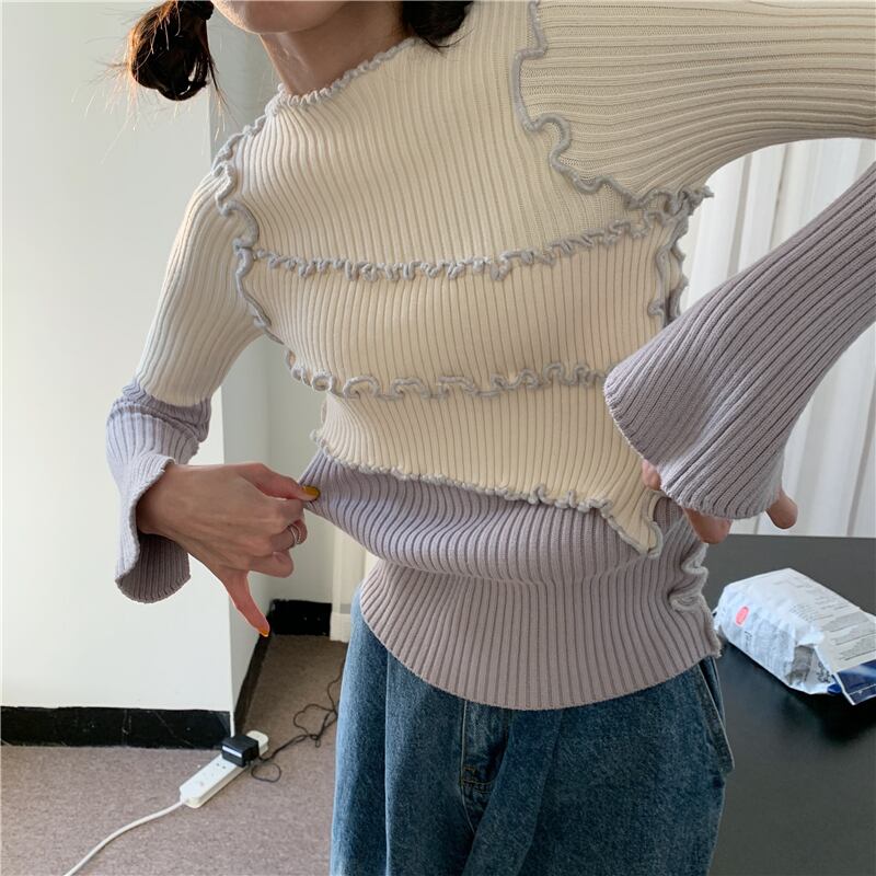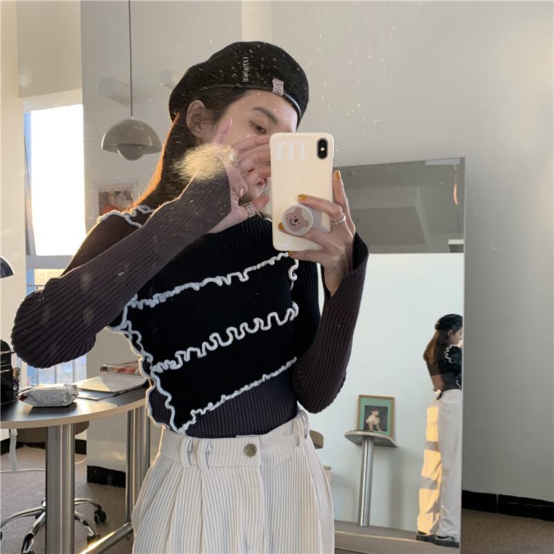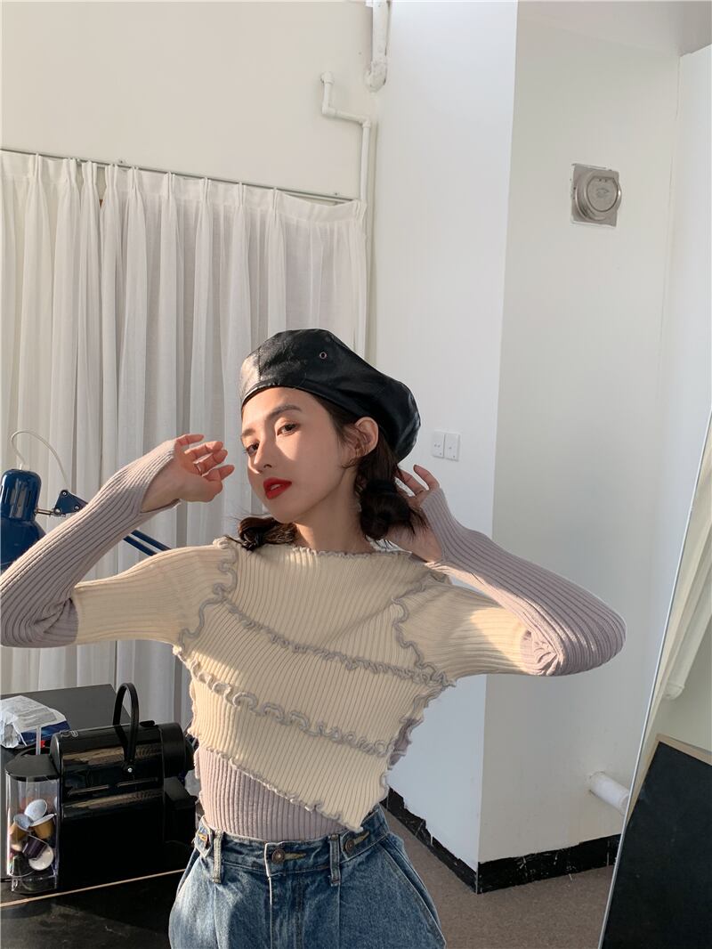 カラーシャツ レディーススタイルニットセーター スリムトップス スタンダード レトロ モンロー71517789304