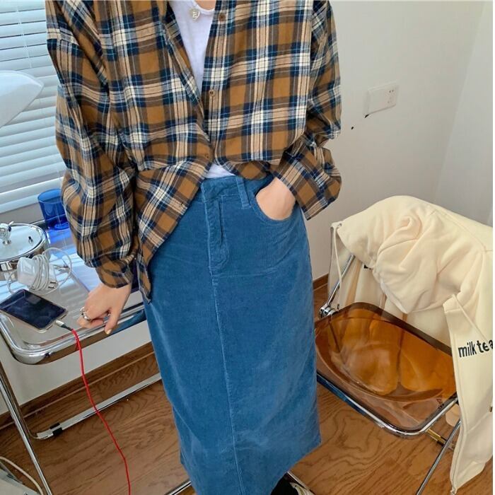 格子柄シャツ ジャケット スプリングスタンダードブラウス ロング レトロ 春物 モンロー23240973553