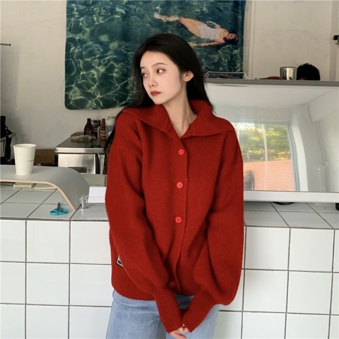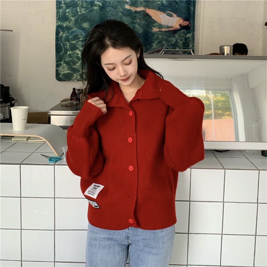 レッドセーター ルーズニットカーディガンスプリングトップス コート ロング 春物 モンロー44952890823