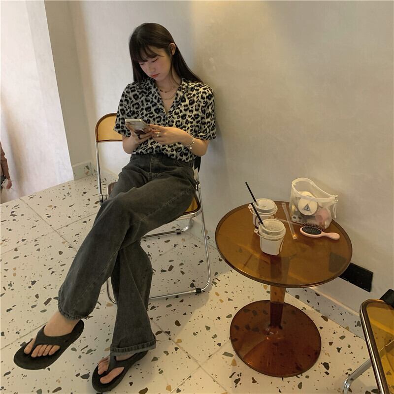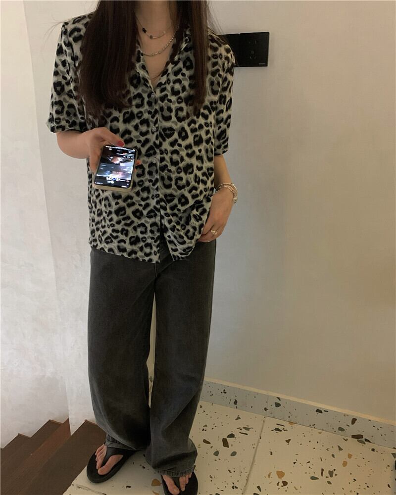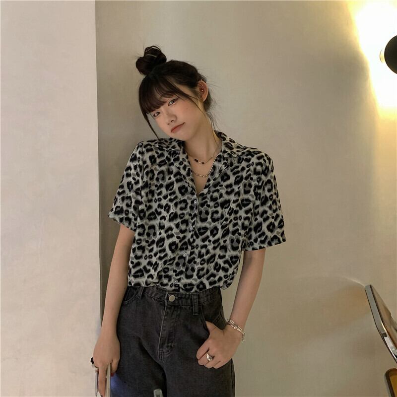 レオパードプリント柄シャツ レディーススタンダードスタイルサマートップス コート レトロ 夏物 モンロー75979612326