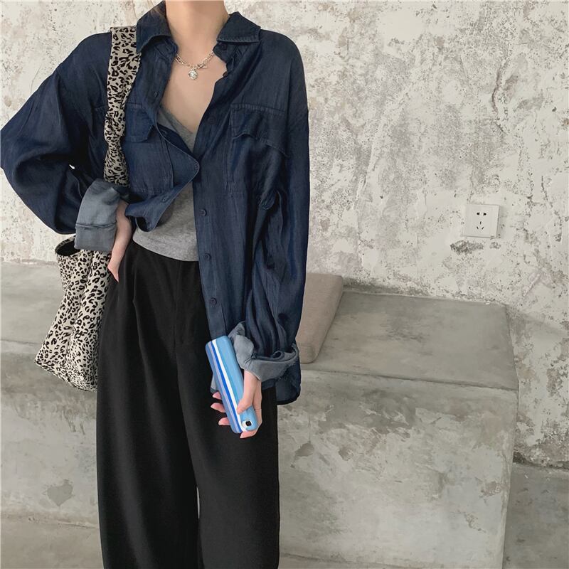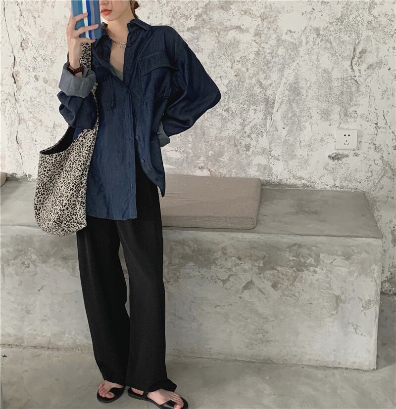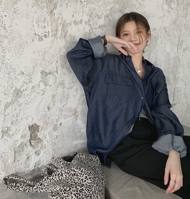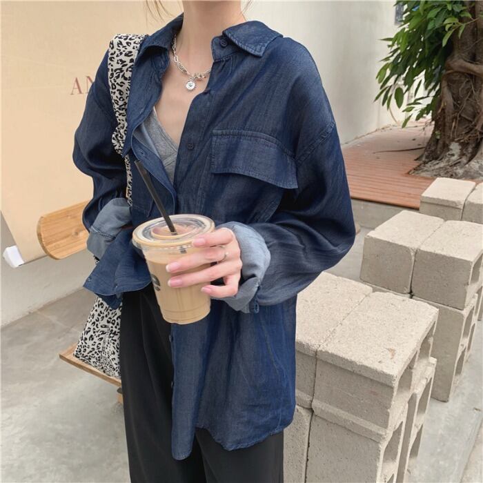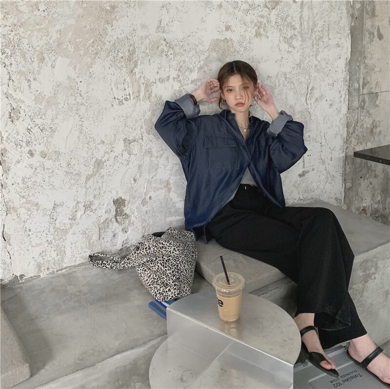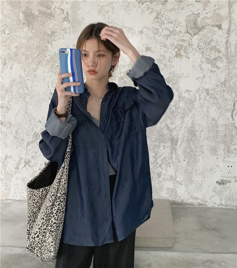 スタンダードシャツ ルーズスプリングトップス ロング レトロ 春物 モンロー10620304385