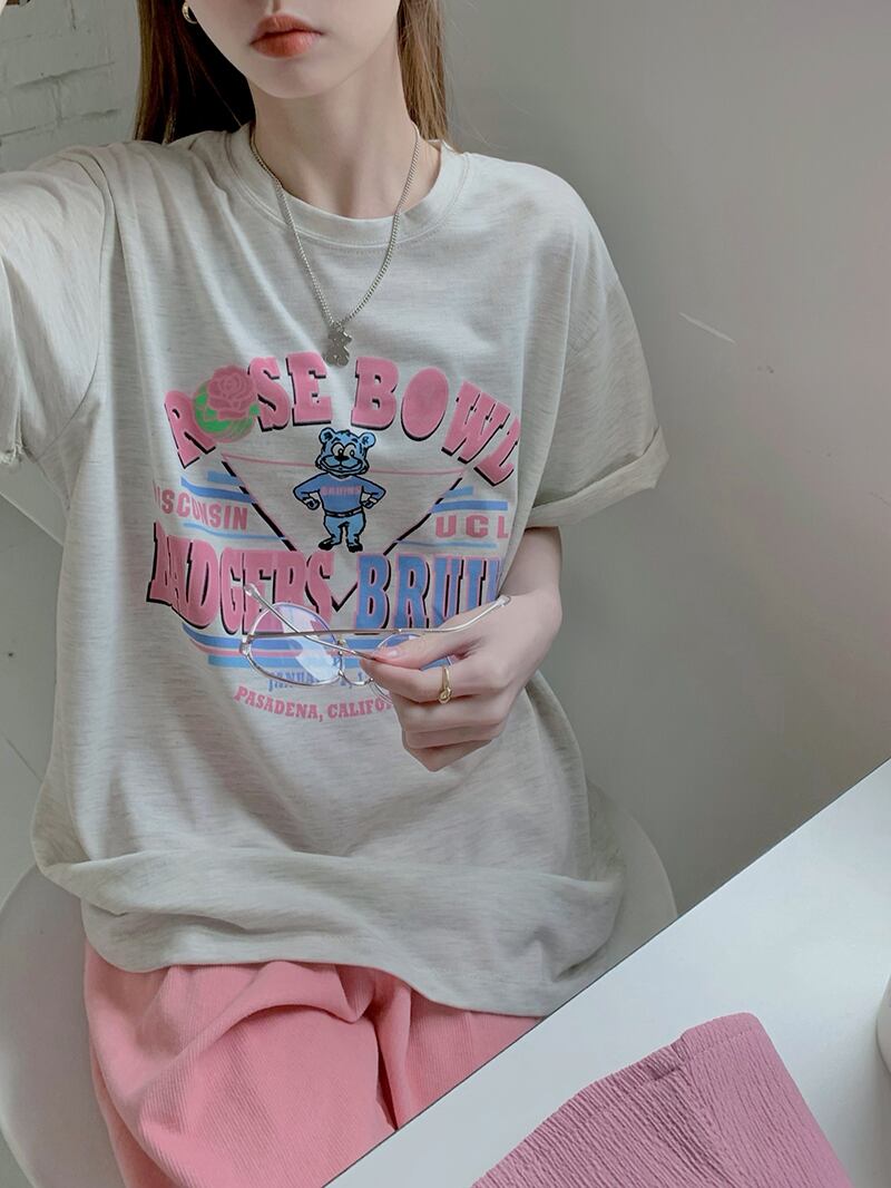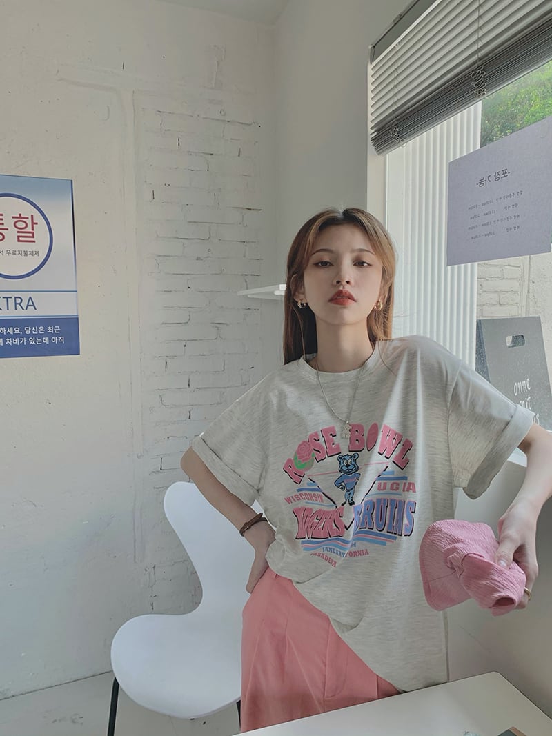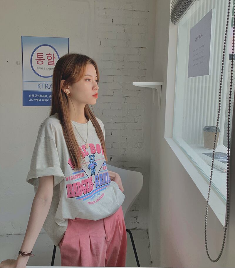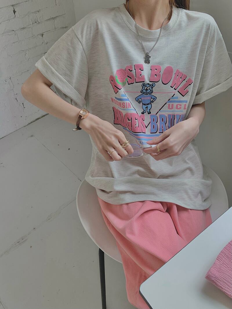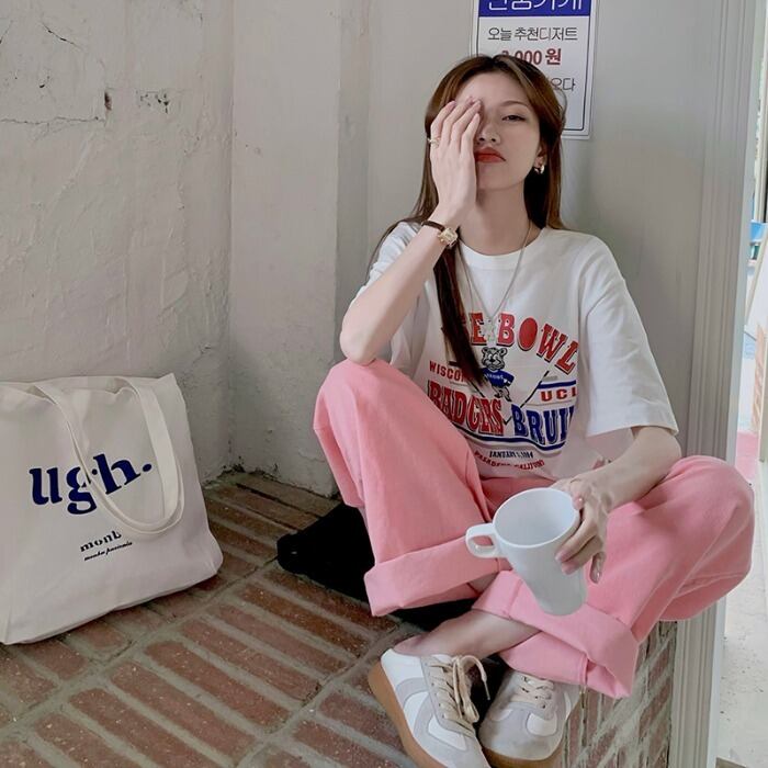 色:赤い文字T,ピンクの文字T,ピーチパンツ