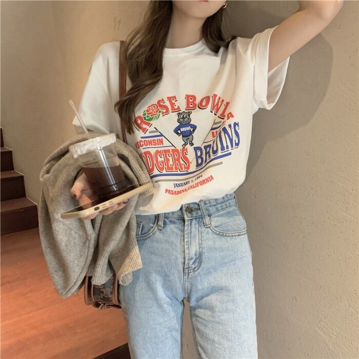 ホワイトTシャツ シャツ ルーズスプリングスタイルトップス 春物 モンロー98140436820