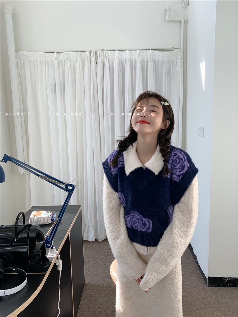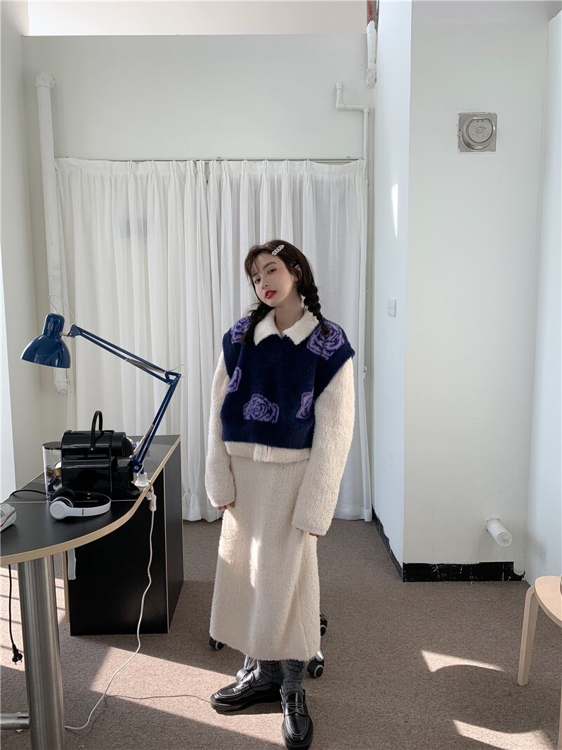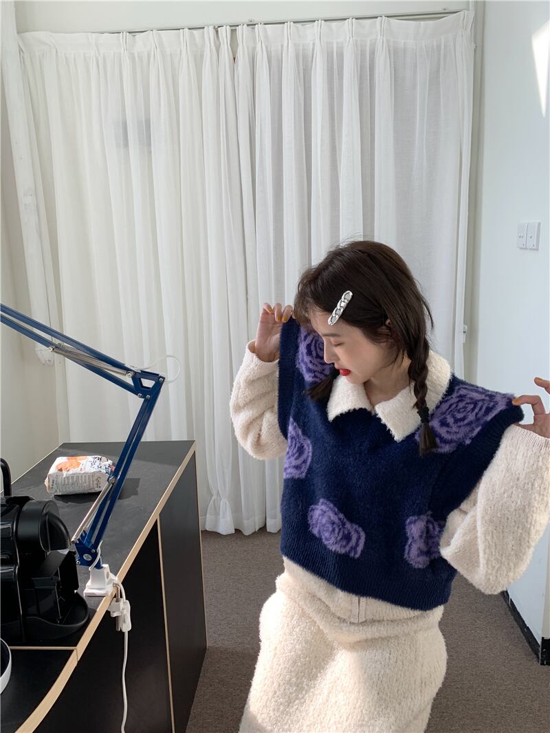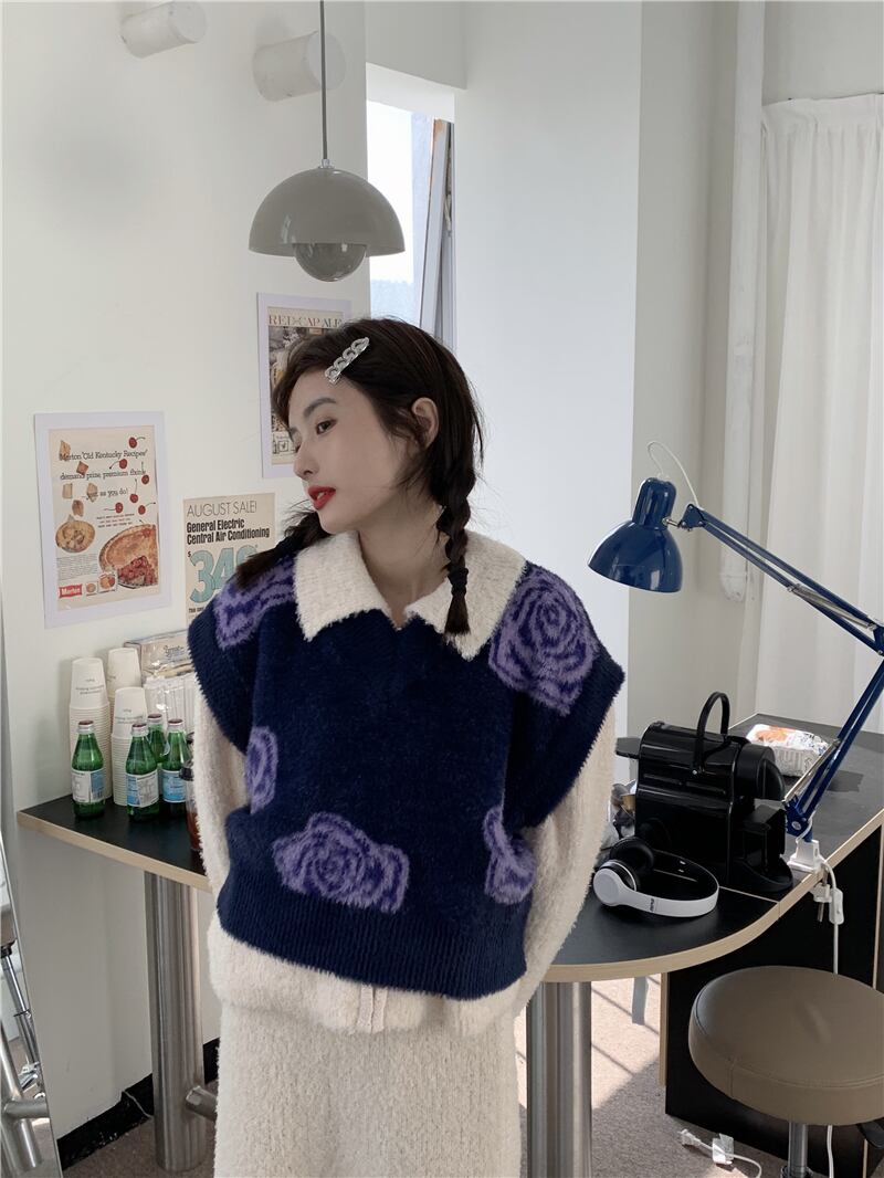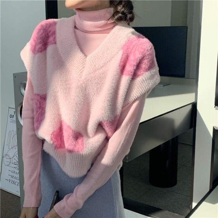 スタンダードカラーニットレディースVネックセーター ノースリーブクロップドトップス レトロ モンロー64303142992