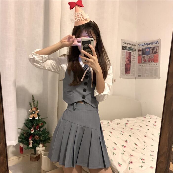 色:ベストスカートスーツ,ネクタイ付きシャツ