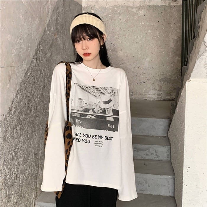 ルーズTシャツ シャツ スタイルスプリング薄手トップス ロング 春物 モンロー13511362109
