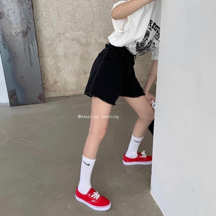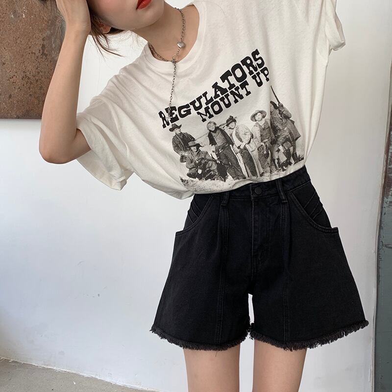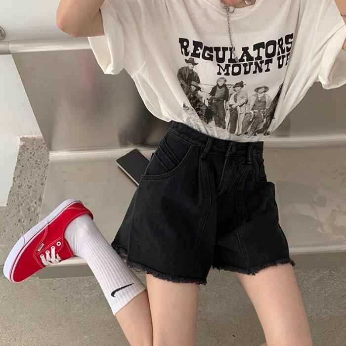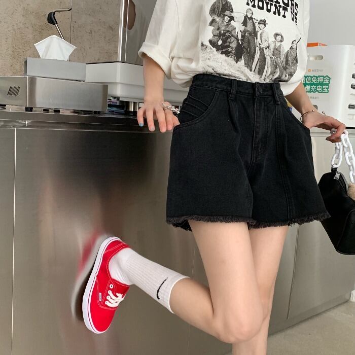 ブラックジーンズ ハイウェストウェストパンツ サマーショーツ ルーズ薄手 夏物 ブルマー モンロー57808765886