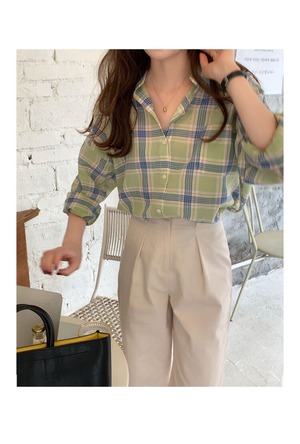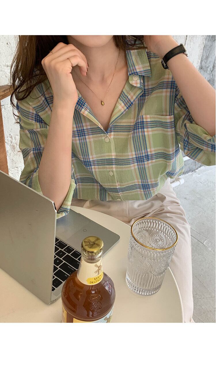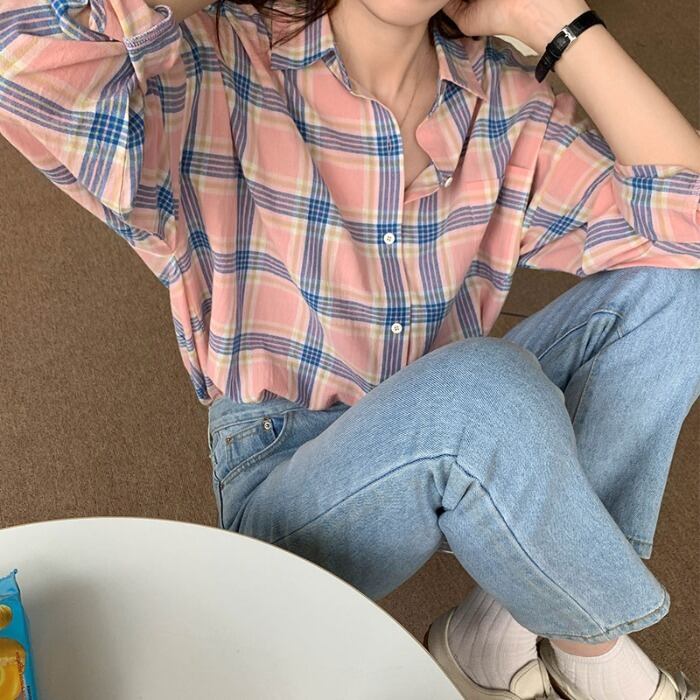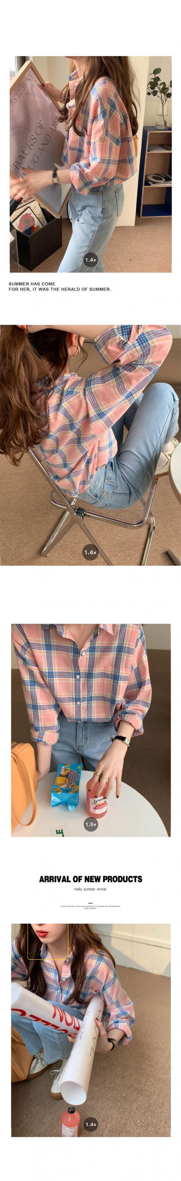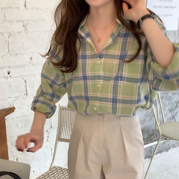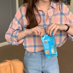 格子柄シャツ スプリングスタンダードジャケット ロング レトロ 春物 モンロー72852419830