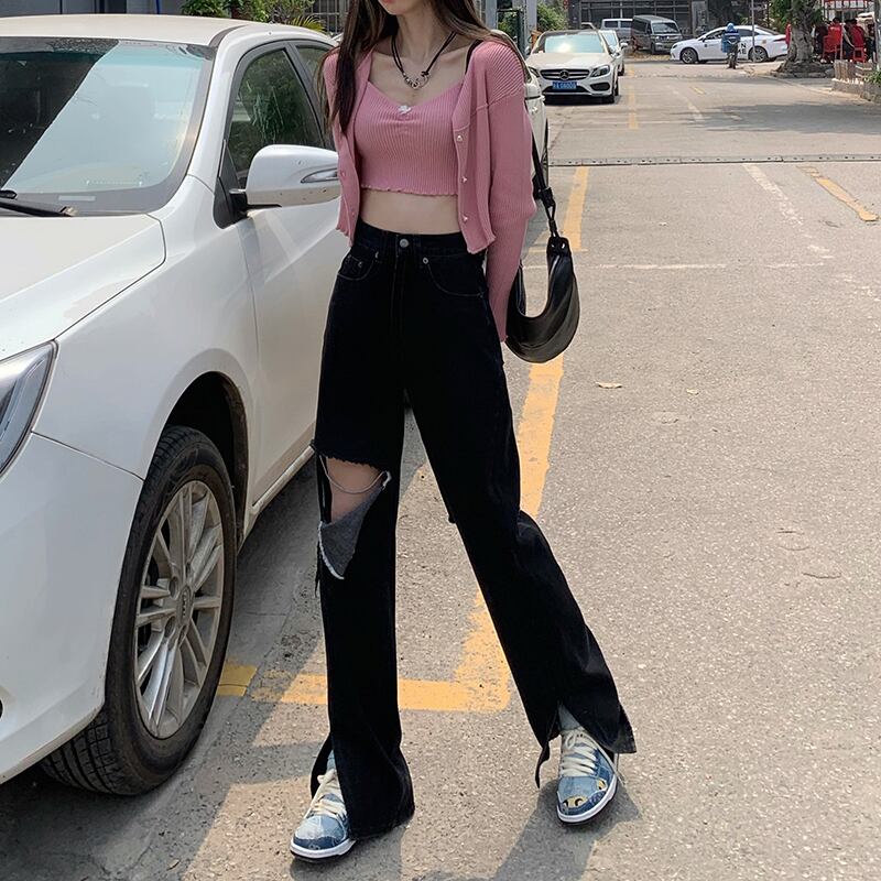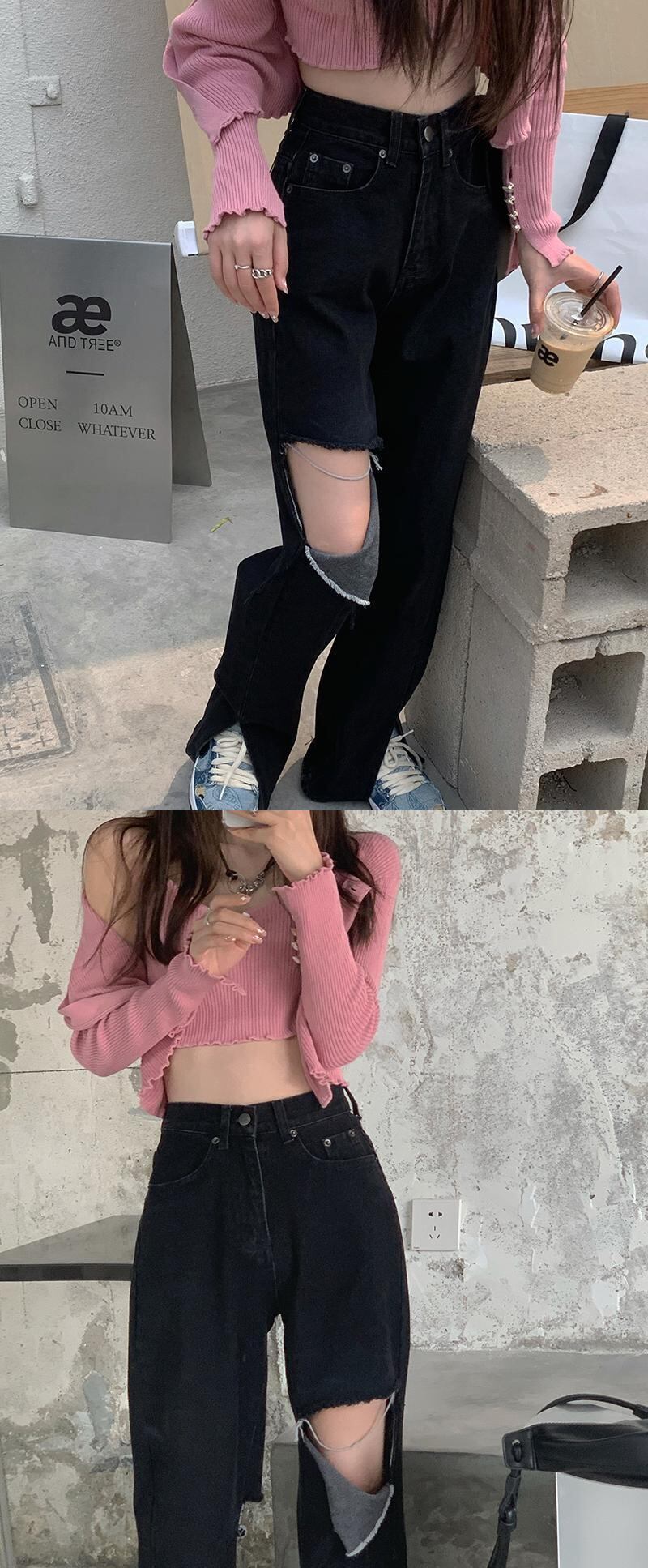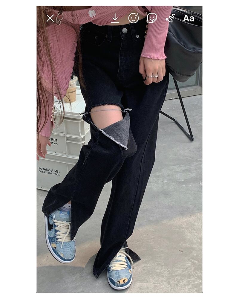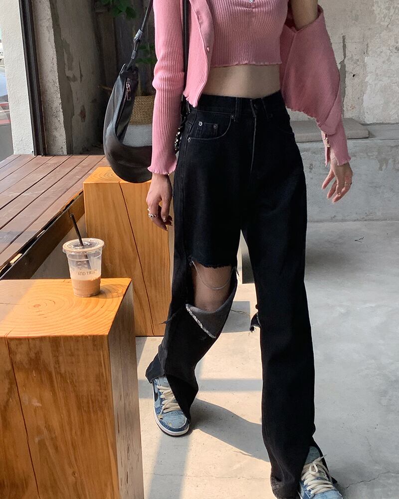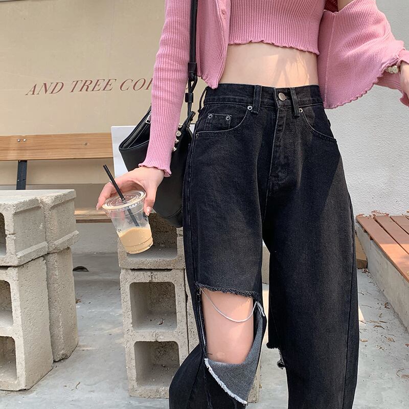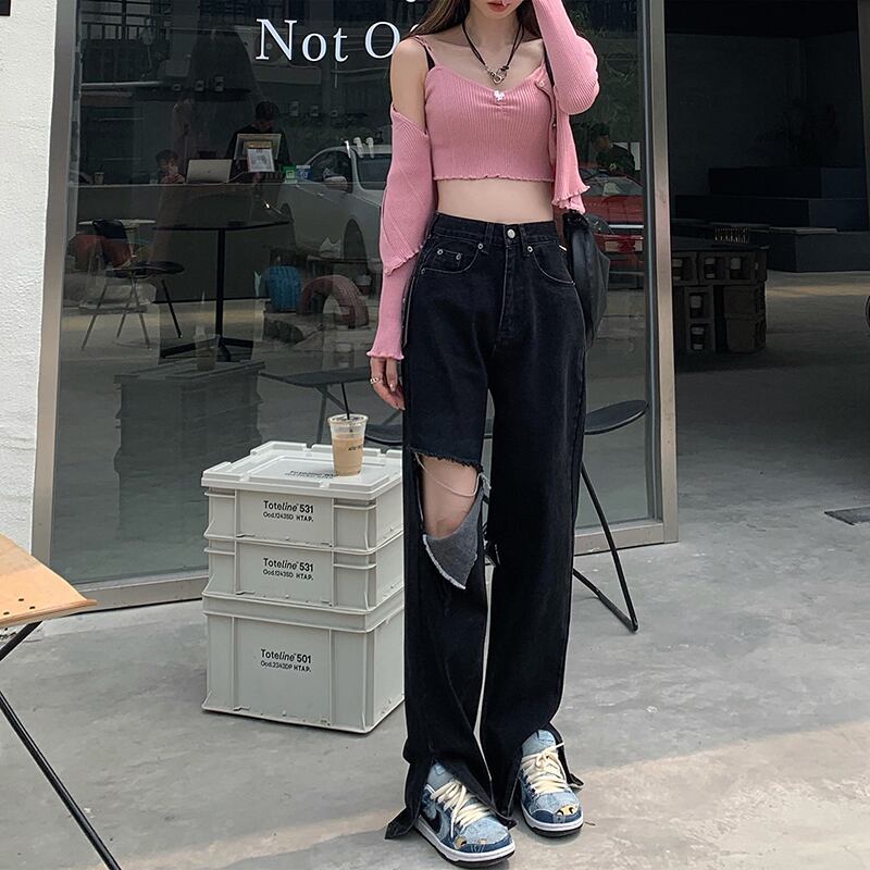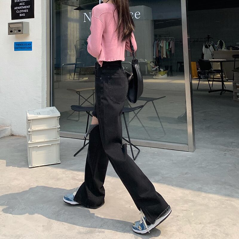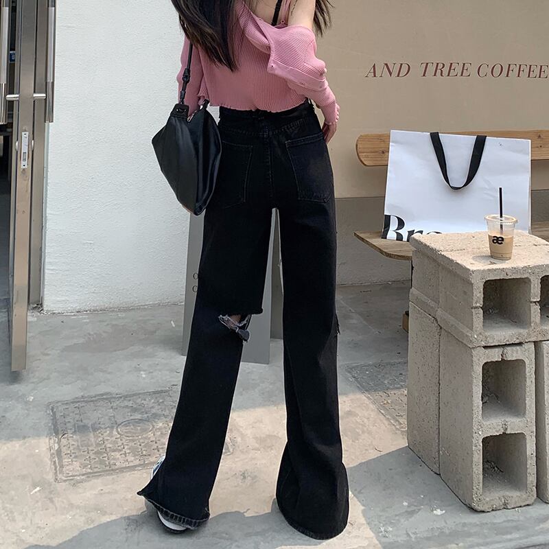 ブラックジーンズ ハイウェストウェストワイドレッグパンツ スプリングサマールーズ 春物 夏物 ワイドパンツ モンロー96221022455