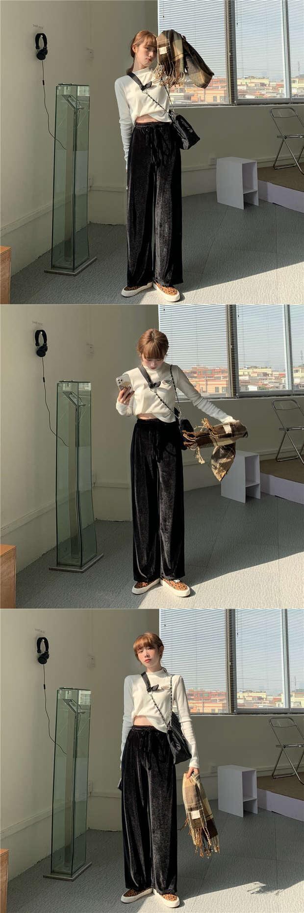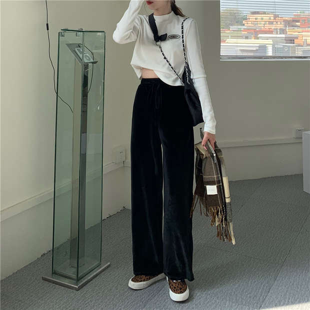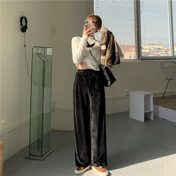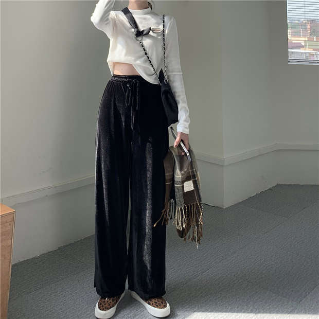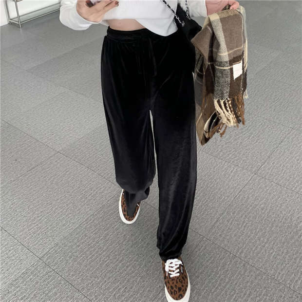 ブラックベルベットパンツ カジュアルハイウェスト モンロー13827145138
