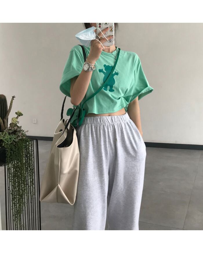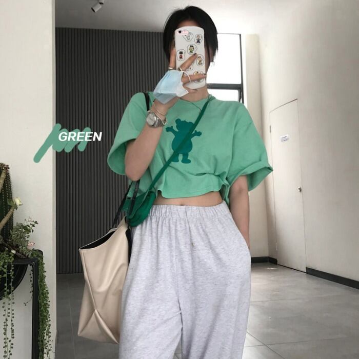 グリーンTシャツ ルーズトップス サマー 夏物 モンロー76120113818