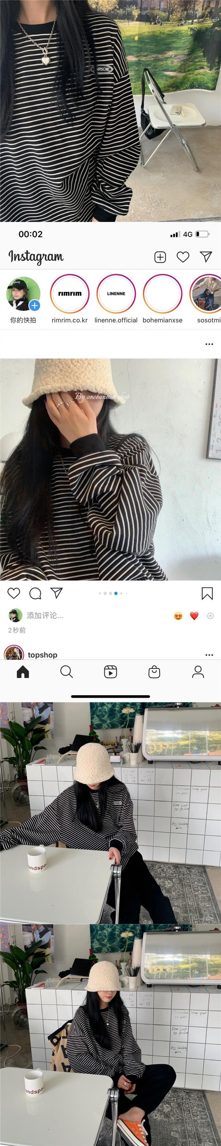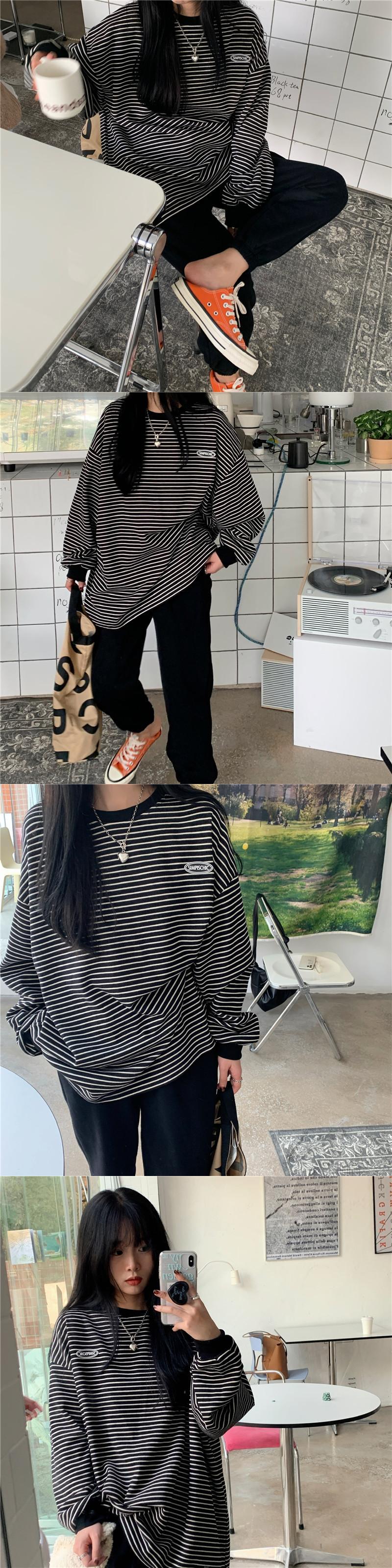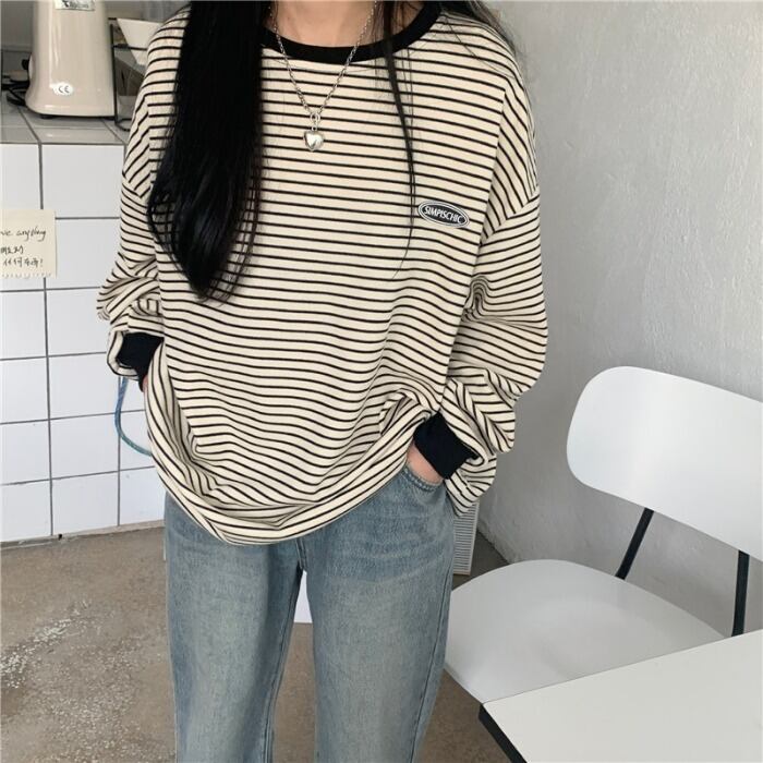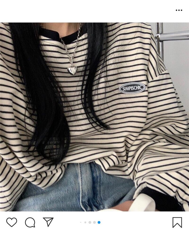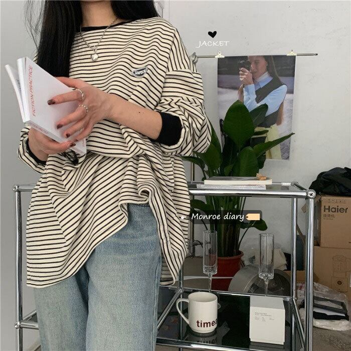 ストライプTシャツ シャツ ルーズトップス スプリングスタイル ロング 春物 モンロー11493339071