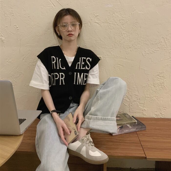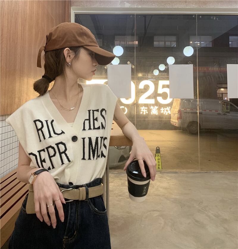 Vネックニットレディーススプリングオータムセーター ジャケット ノースリーブ 春物 秋物 モンロー49944680603