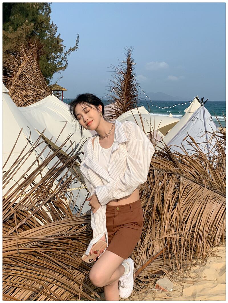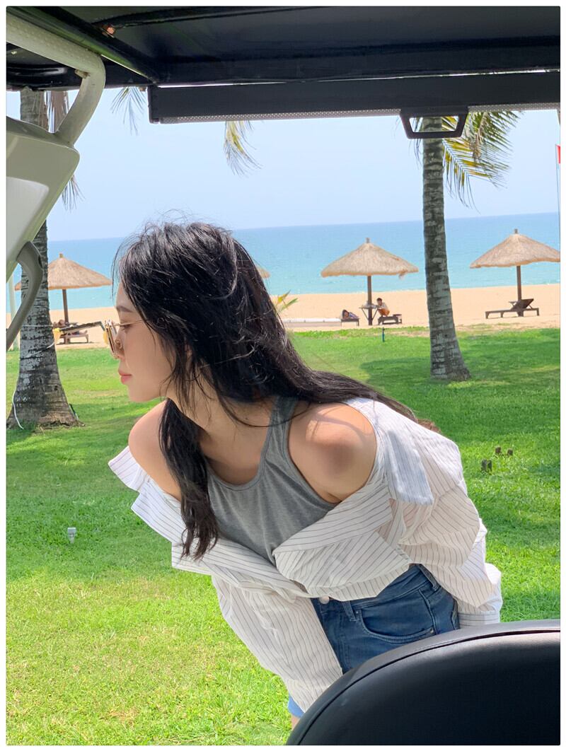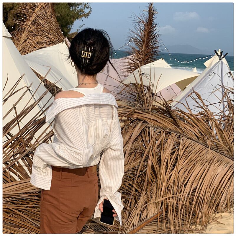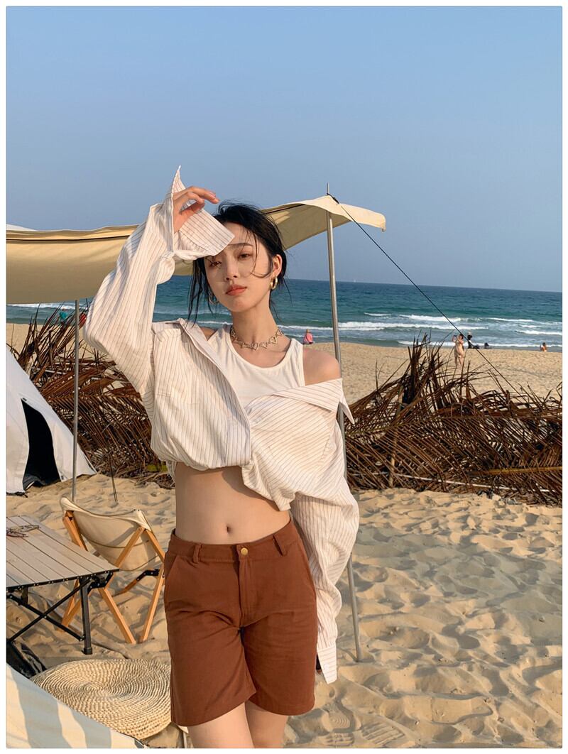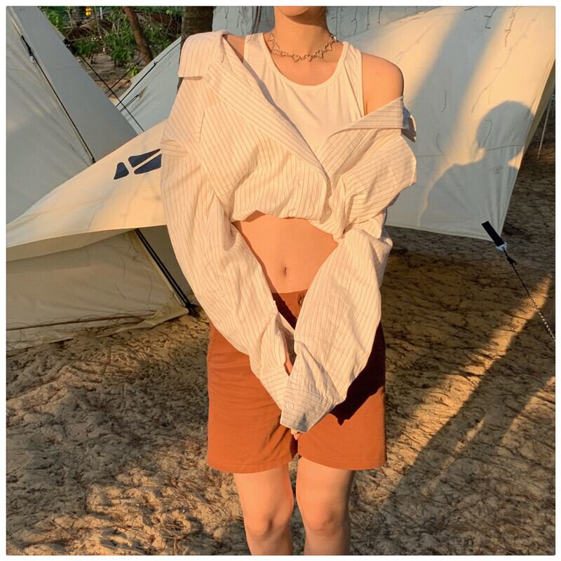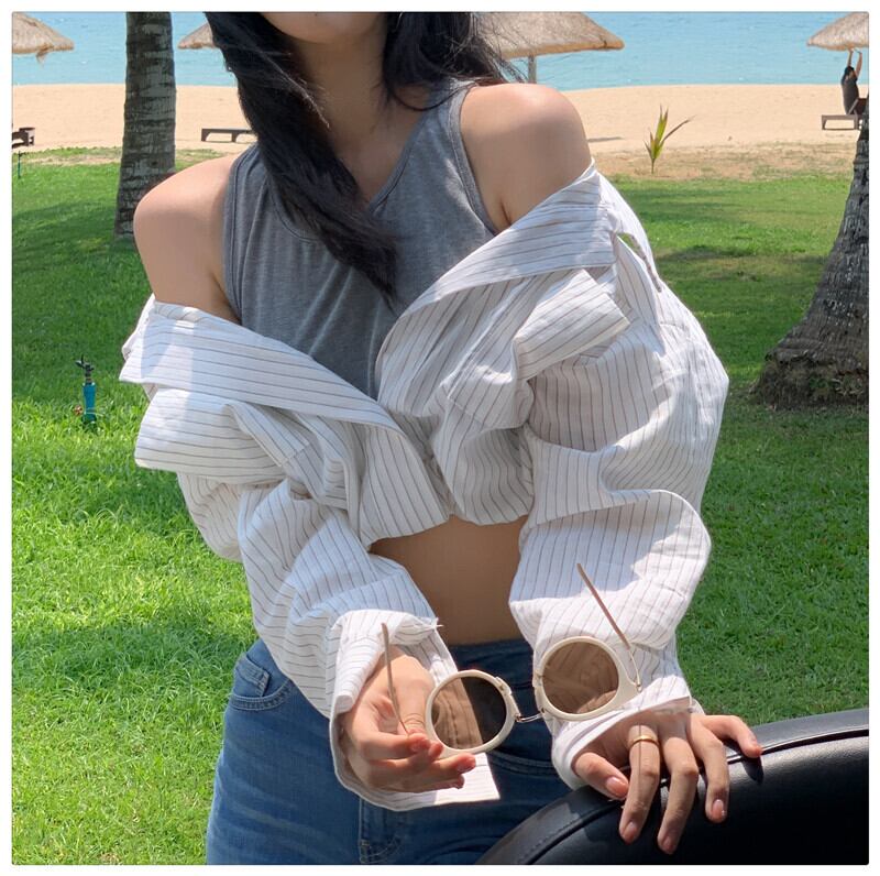 ストライプシャツ ルーズジャケット スプリングショートトップス ロング 春物 モンロー45808233011