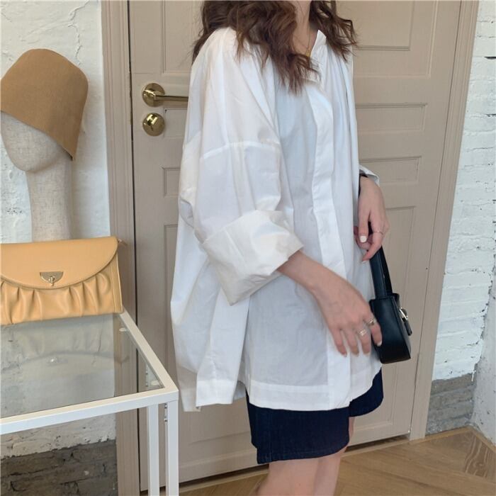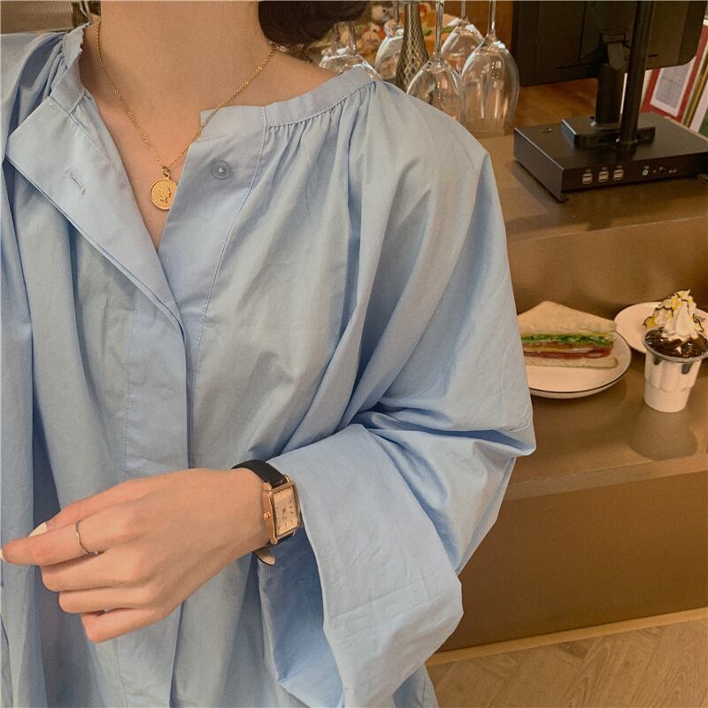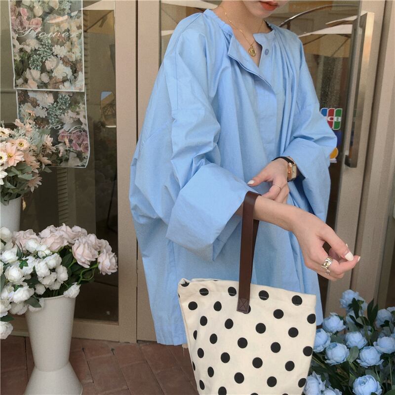 ブルーシャツ ジャケット スプリングスタンダードブラウス ロング レトロ 春物 モンロー63643187247