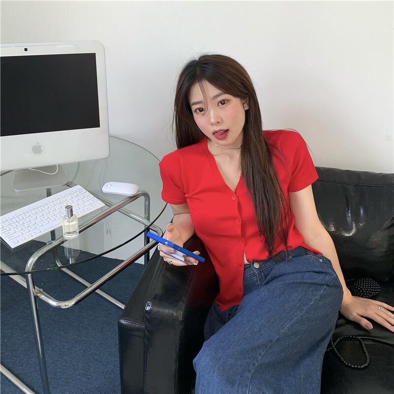 スタンダードVネックルーズセーター レディースサマーショートカーディガンジャケット トップス レトロ 夏物 モンロー43927567755