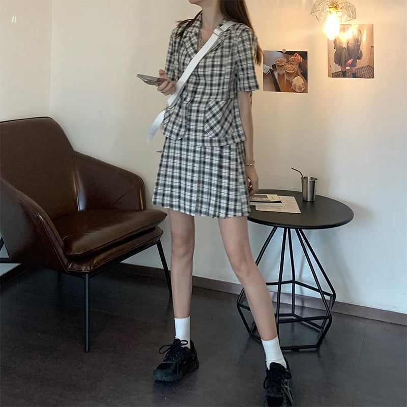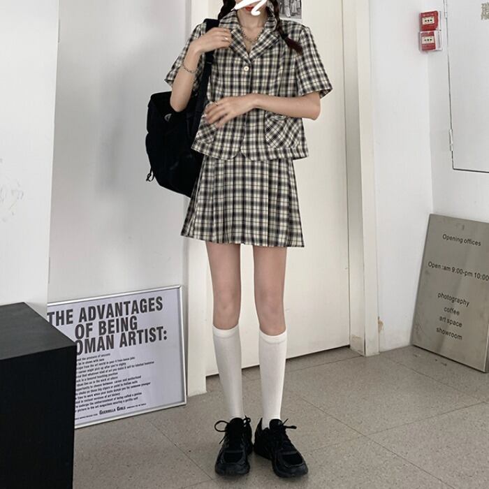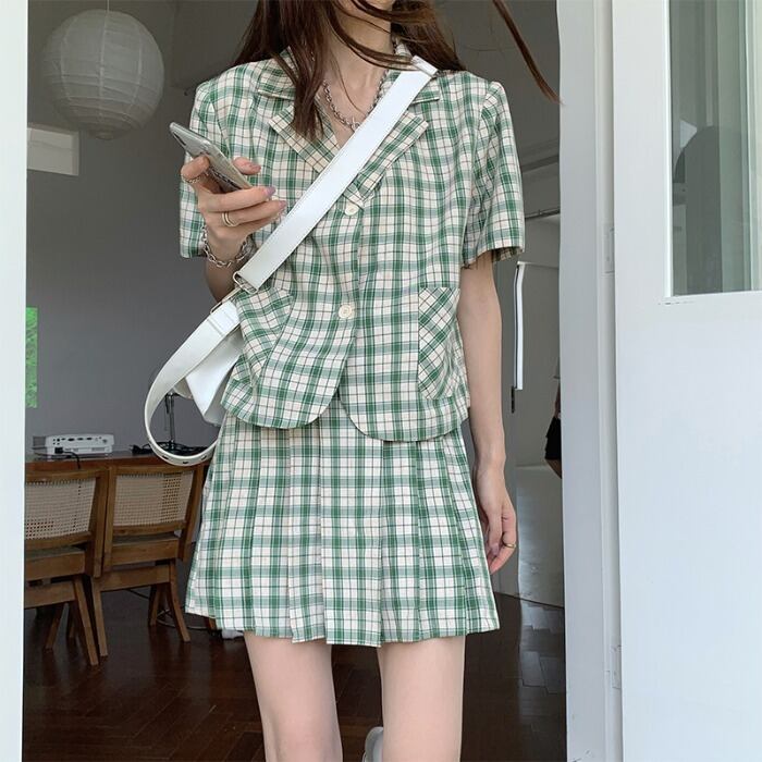 色:ブラックチェック柄トップ363,グリーンチェックトップ363,ブラックチェック柄のスカート365,緑のチェック柄スカート365