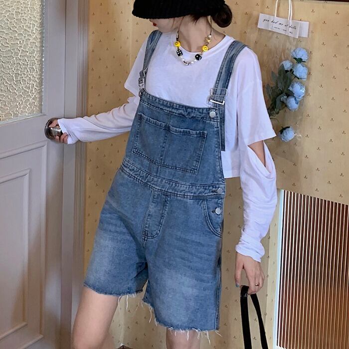 オーバーオール ジーンズ ハイウェストウェストスリムパンツ ルーズショーツ サマー 夏物 ブルマー モンロー62440243373