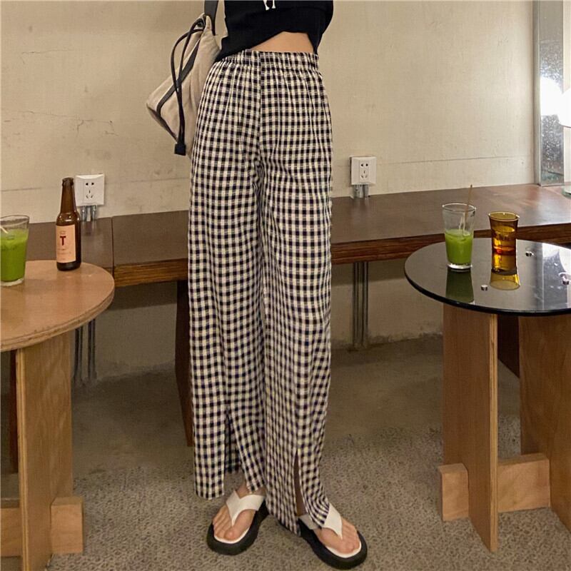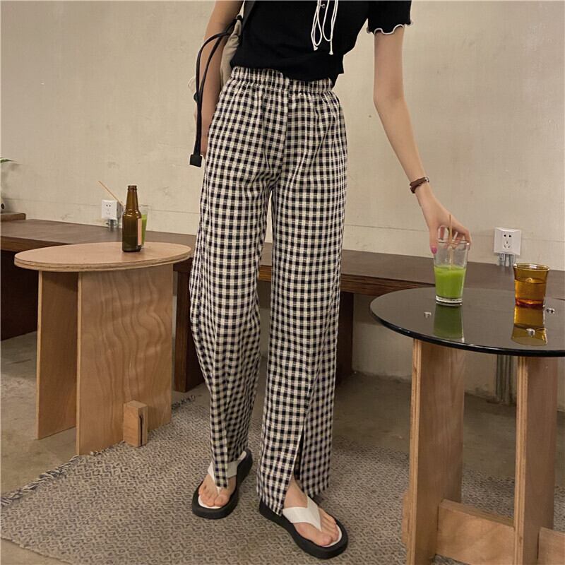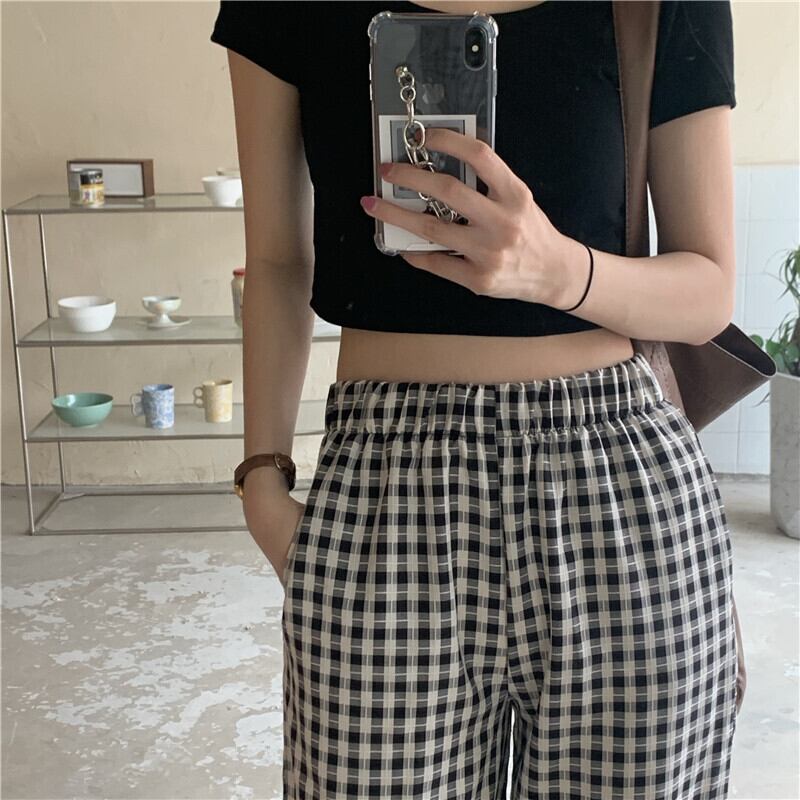 格子柄カジュアルパンツ ハイウェストスプリングルーズ薄手 春物 モンロー27001792669