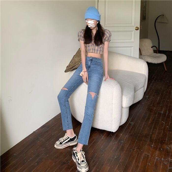 ジーンズ ハイウェストウェストパンツ サマー 夏物 モンロー88478436054